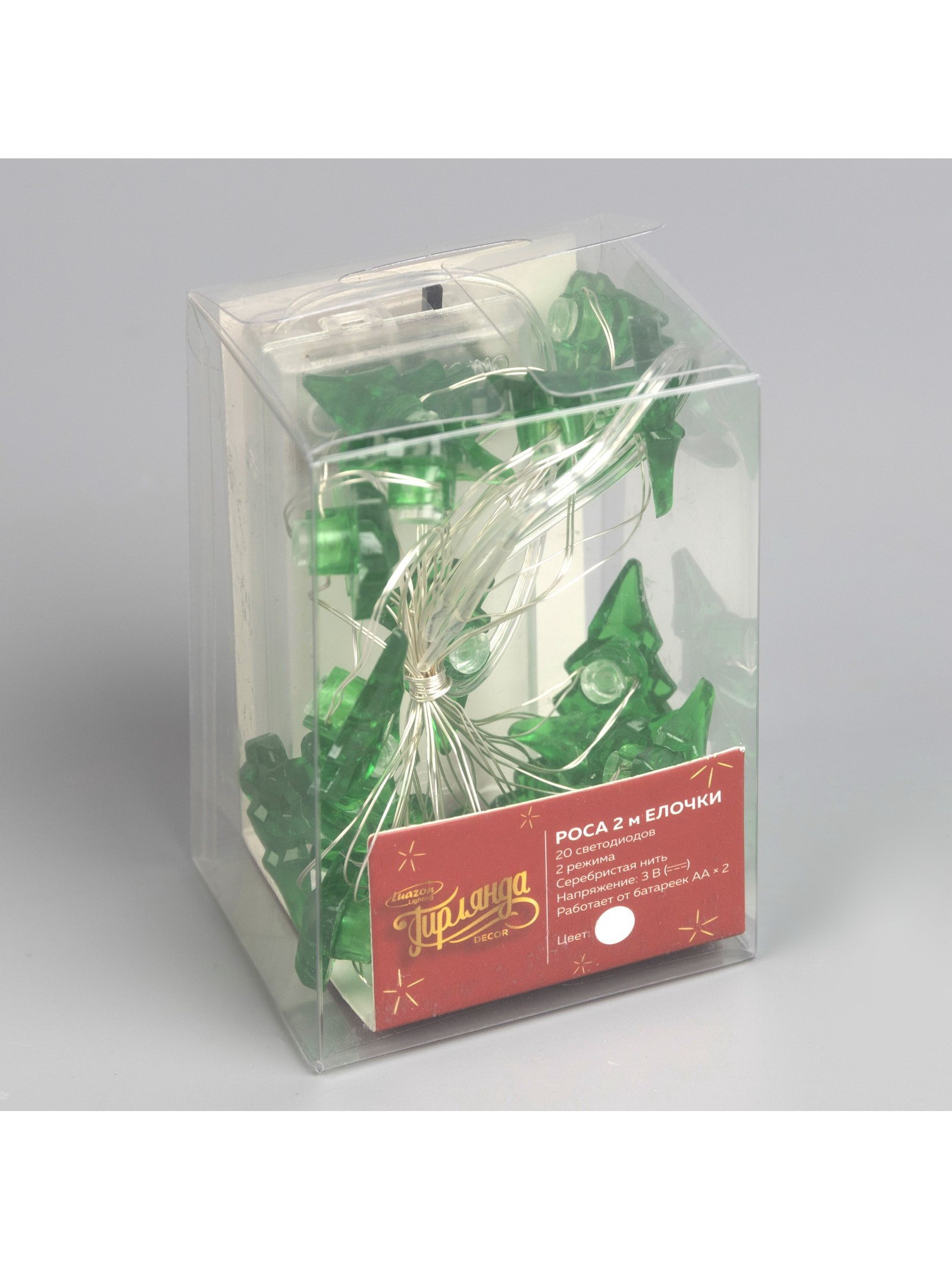 Гирлянда "Нить" 2 м, роса с насадками "Ёлочка", IP20, серебристая нить, 20 LED, 2 режима, от батареек ААx2, свечение белое, 5.5x8x5 см., Luazon Lighting, Китай