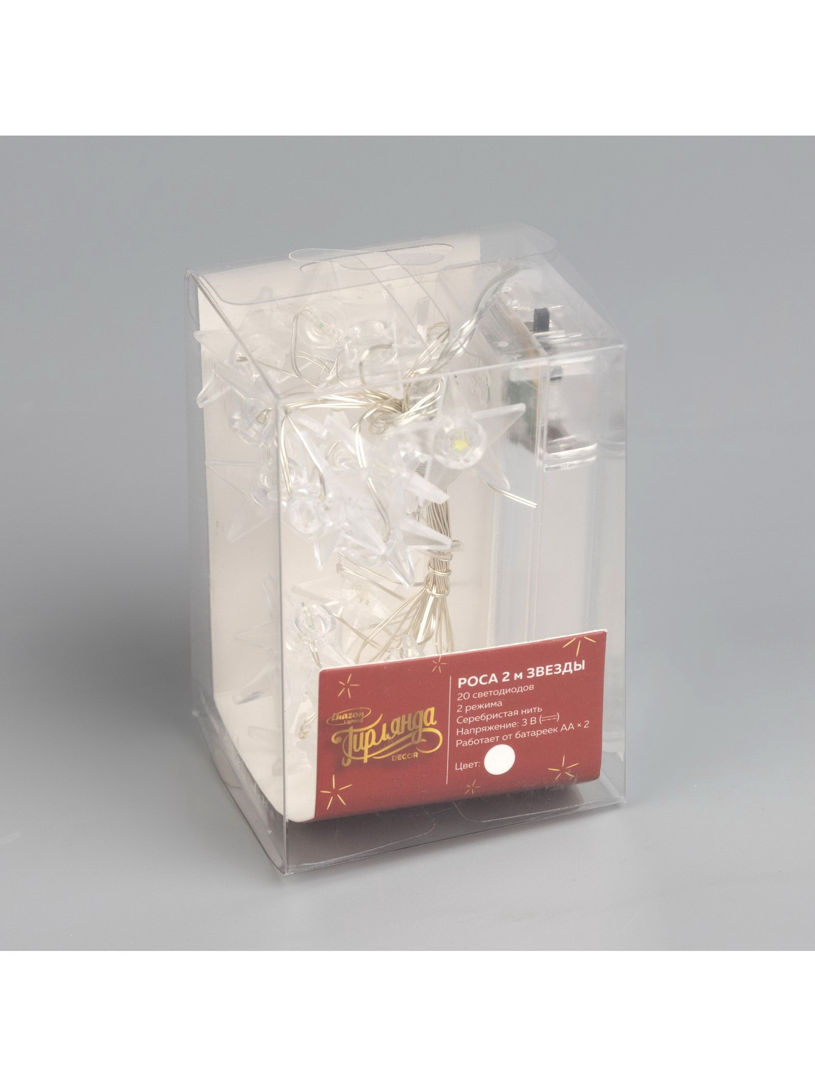 Гирлянда "Нить" 2 м, роса с насадками "Звезда", IP20, серебристая нить, 20 LED, свечение белое, 2 режима, ААх2, 5.5x8x5 см., Luazon Lighting, Китай
