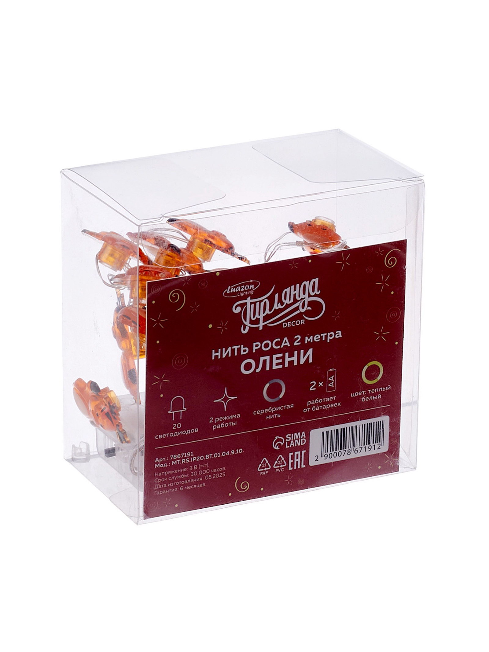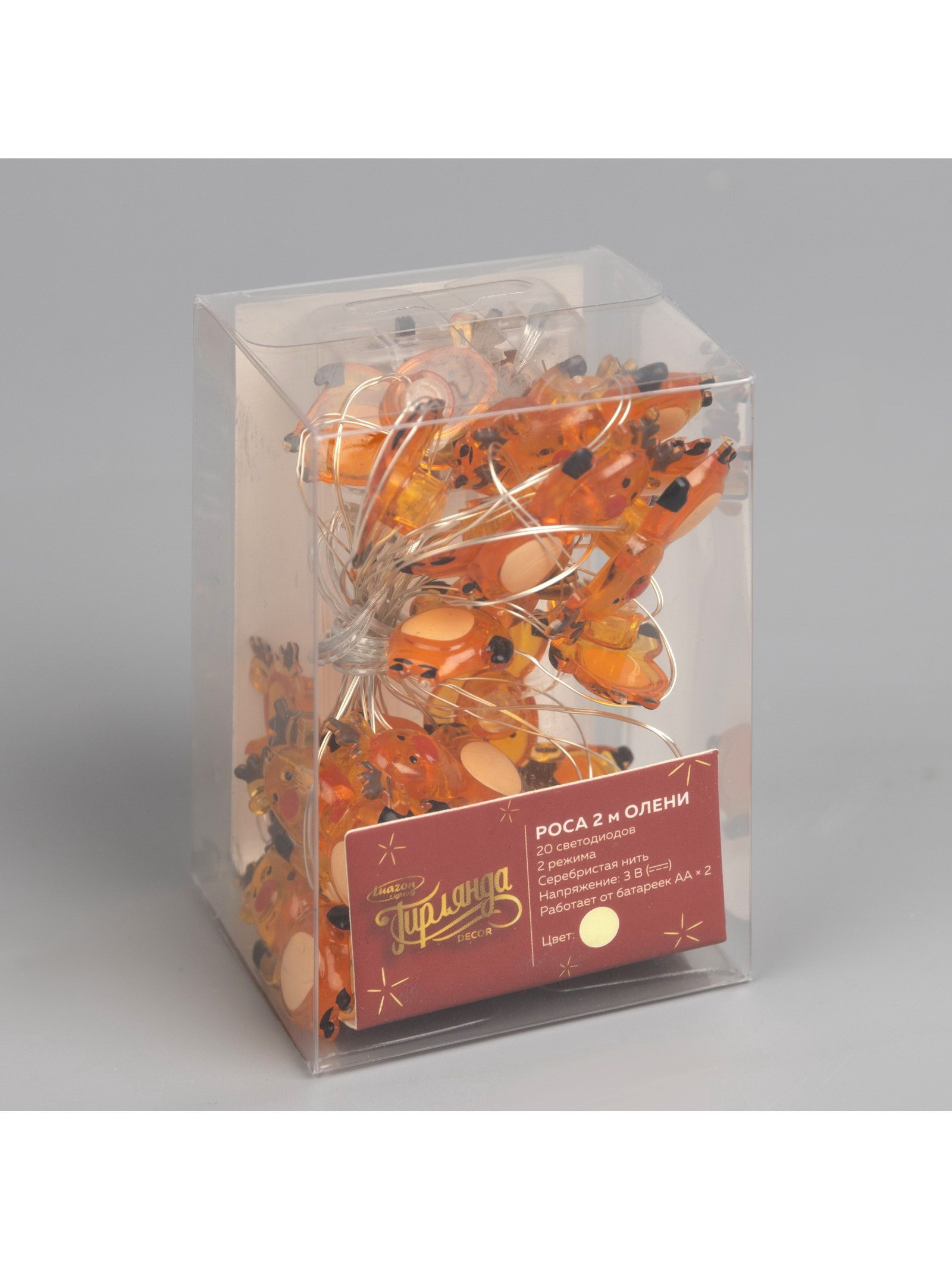 Гирлянда "Нить" 2 м, роса с насадками "Олень", IP20, серебристая нить, 20 LED, 2 режима, от батареек ААx2, свечение тёплое белое, 5.5x8x5 см., Luazon Lighting, Китай