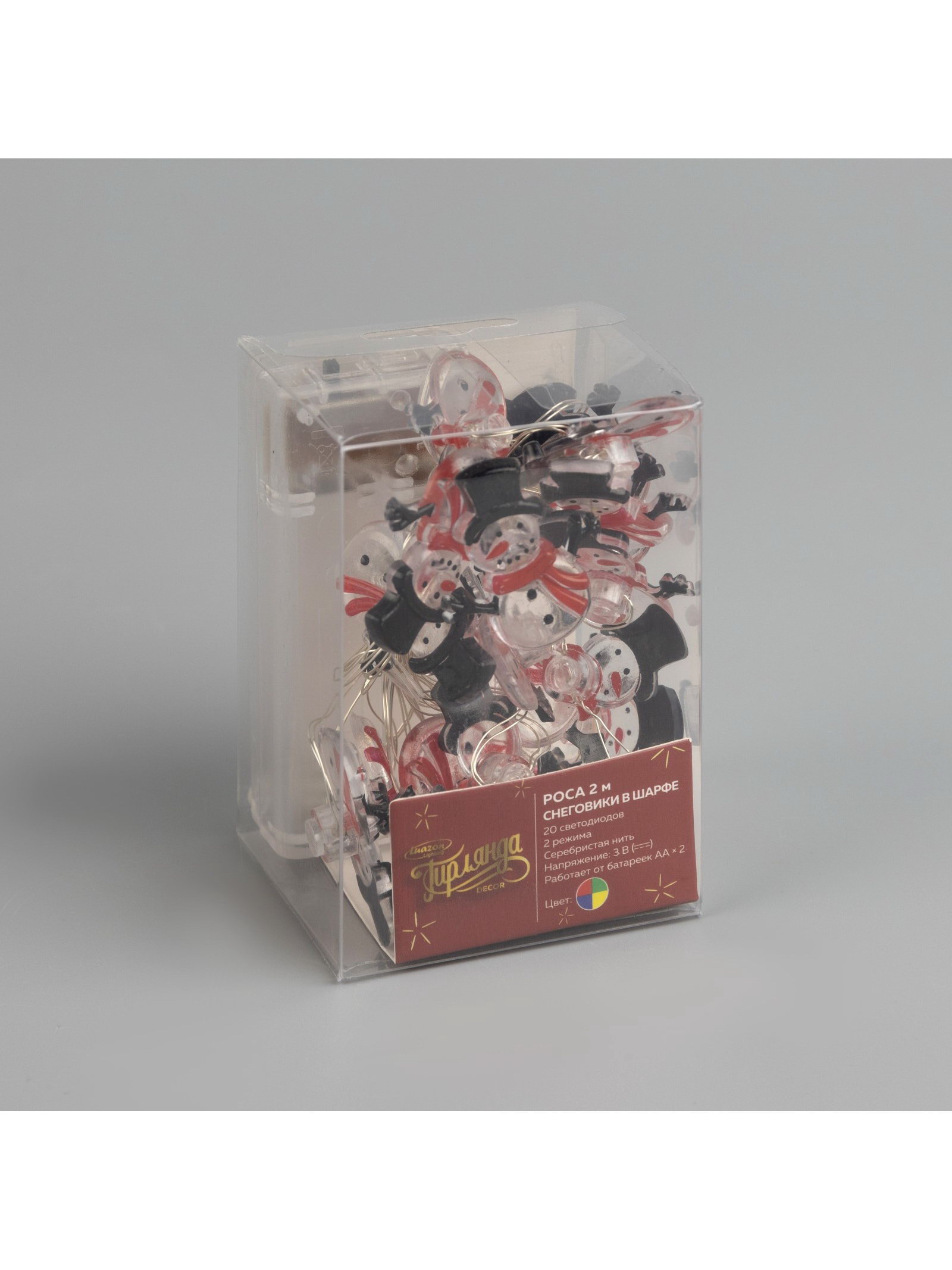 Гирлянда "Нить" 2 м, роса с насадками "Снеговик в шарфе", IP20, серебристая нить, 20 LED, 2 режима, от батареек ААx2, свечение мульти, 5.5x8x5 см., Luazon Lighting, Китай