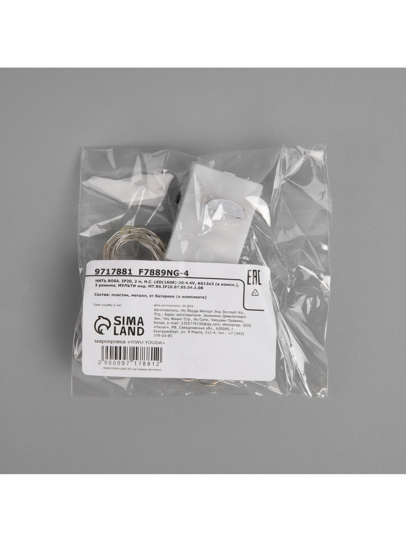 Гирлянда "Нить" 2 м роса, IP20, серебристая нить, 20 LED, 3 режима, батарейки AG13x3, 5x7x1 см., Luazon Lighting, Китай