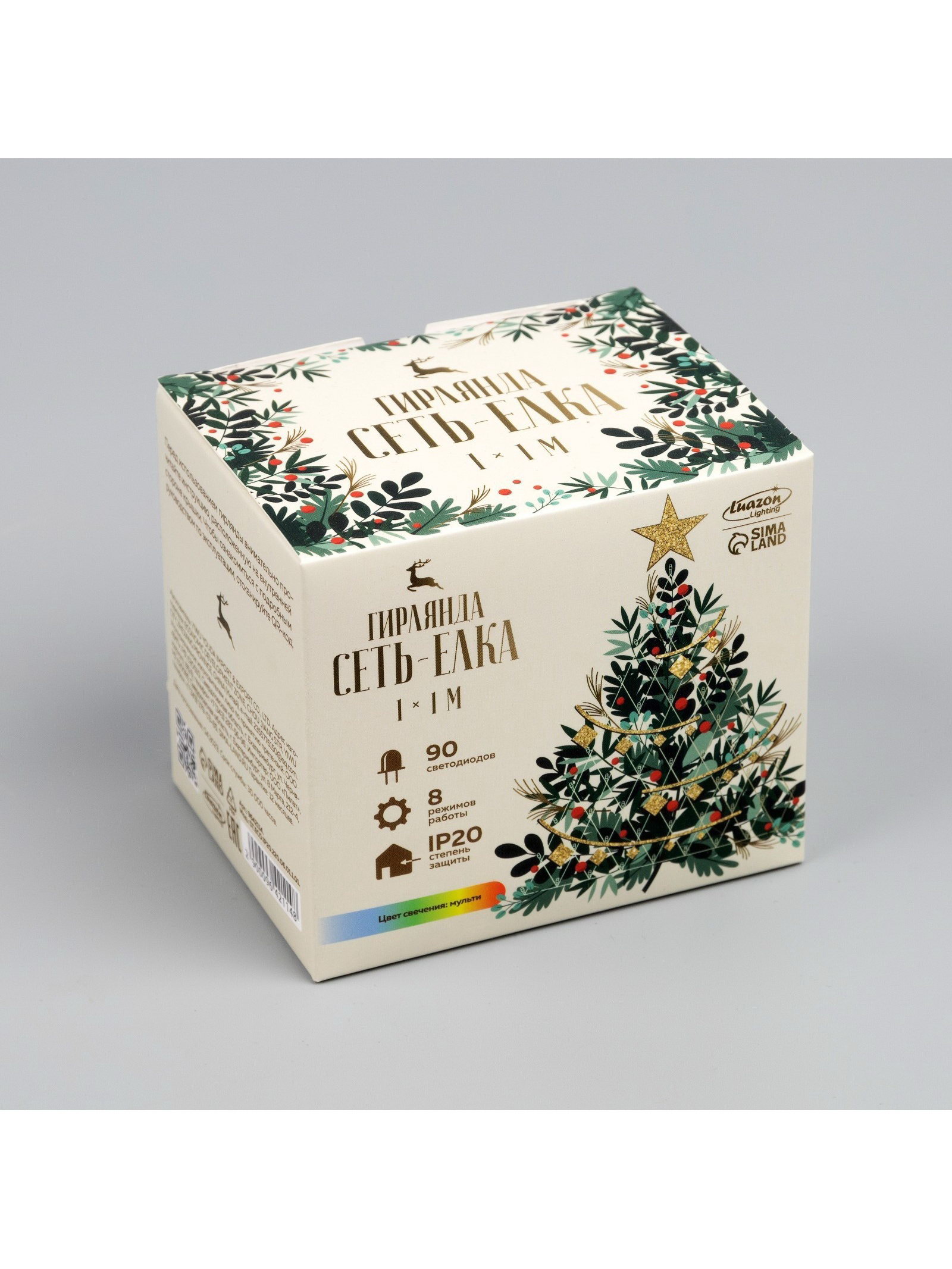 Гирлянда "Сеть-ёлка" 1 x 1 м, IP20, тёмная нить, 90 LED, свечение мульти, 8 режимов, 220 В, 5x9x5 см., Luazon Lighting, Китай