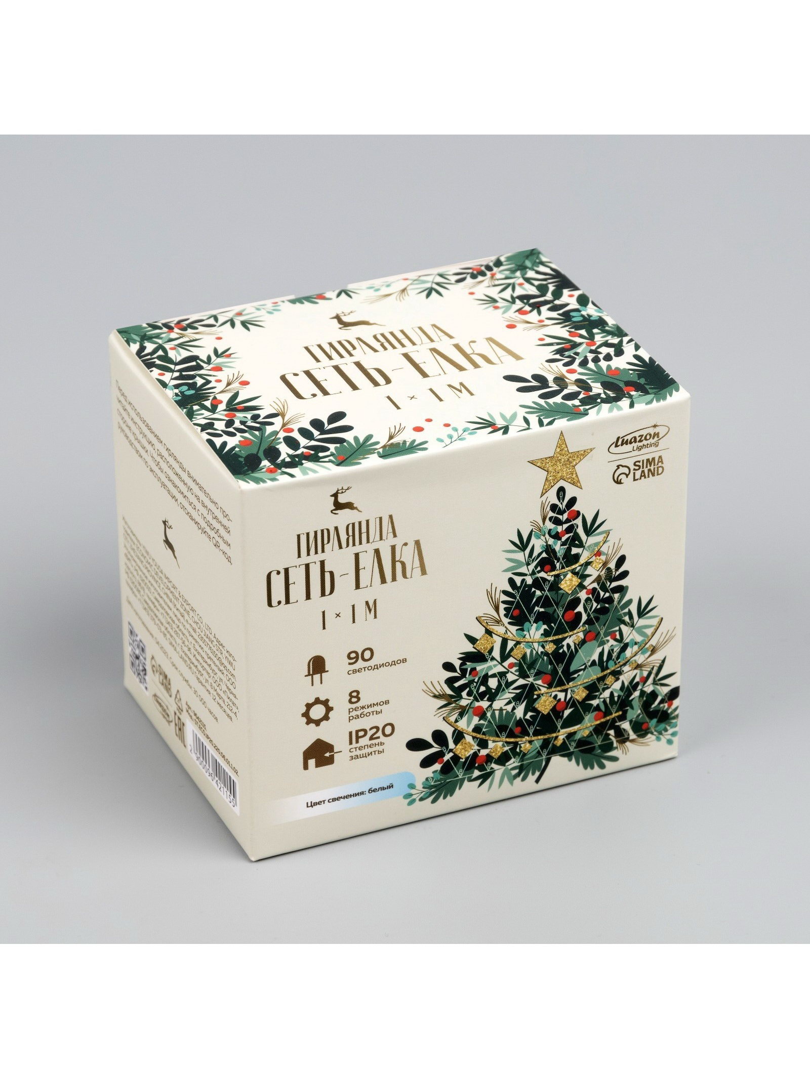 Гирлянда "Сеть-ёлка" 1 x 1 м, IP20, тёмная нить, 90 LED, свечение белое, 8 режимов, 220 В, Luazon Lighting, Китай