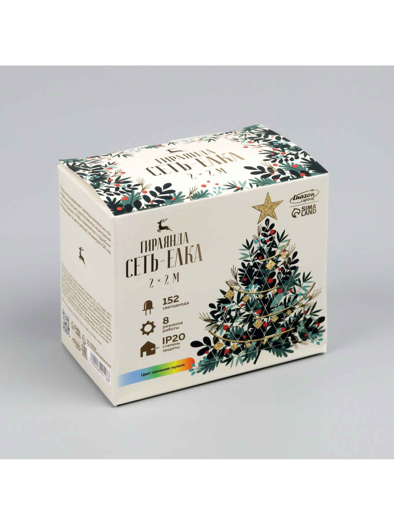 Гирлянда "Сеть-ёлка" 2 x 2 м, IP20, тёмная нить, 152 LED, свечение мульти, 8 режимов, 220 В, 6.5x12x6.5 см., Luazon Lighting, Китай