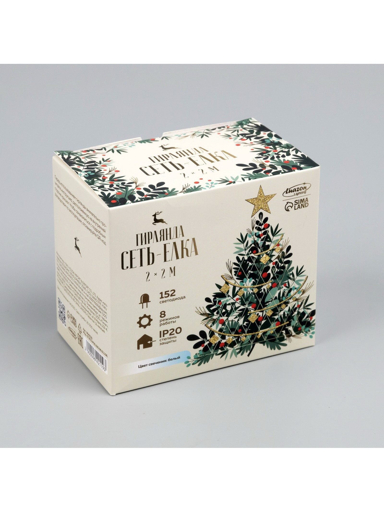 Размер упаковки: 7.5 x 10 x 11 см. tnved: 9405310000 Гарантийный срок, мес.: 12 Цвет нити гирлянды: Прозрачный Вид гирлянды: Сетка Материал нити: ПВХ Тип подключения: С контроллером Применение: Внутреннее Насадки: Нет Количество режимов: 8 Количество ламп: 152 Необходимая комплектация: Удлинитель (УМС вилки) Цвет свечения: Белый Температурный режим: От -10 до +35 ℃ Размер, м: 2 x 2 Степень защиты: IP20 Тип питания: От сети 220 В Режим работы: Задаётся контроллером Вид лампы: Светодиодная Высота, м: 2 Ширина, м: 2
