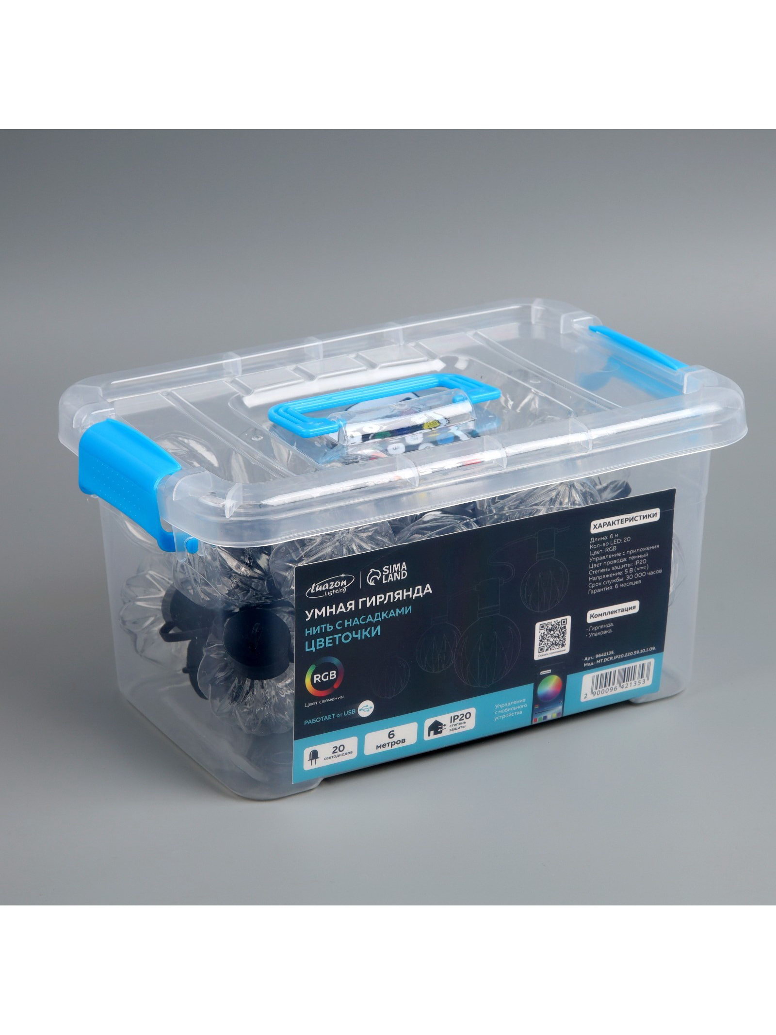 Размер упаковки: 19 x 15.5 x 28.5 см. Материал насадок: Пластик tnved: 9405310000 Длина, м: 6 Количество режимов: 250 Режим работы: Задаётся контроллером Применение: Внутреннее Вид гирлянды: Гирлянда-нить Степень защиты: IP20 Тип подключения: USB Необходимая комплектация: Не нужна Цвет свечения: RGB Цвет нити гирлянды: Тёмный Вид лампы: Светодиодная Материал нити: ПВХ Температурный режим: От -10 до +35 ℃ Тип питания: От USB Насадки: Да Наличие блока питания: Нет Количество ламп: 20