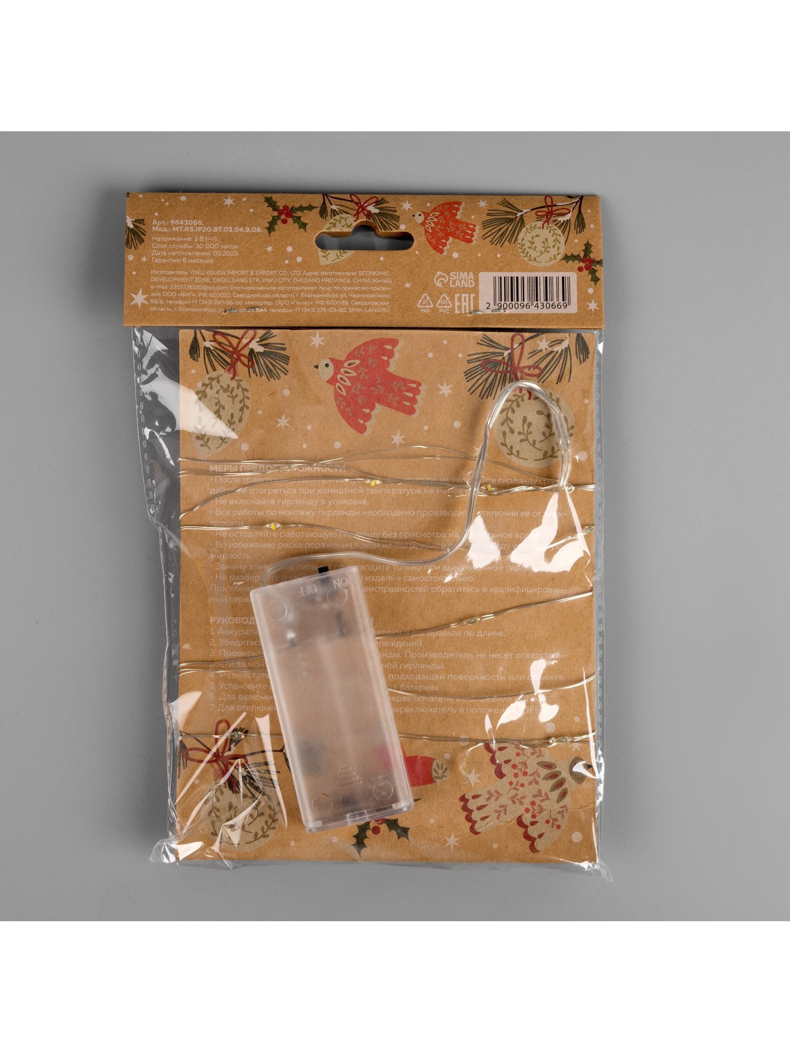 Вид гирлянды: Гирлянда-нить, Капля росы Размер упаковки: 15 x 3 x 17 см. Типоразмер батареек: AA (LR6) Материал насадок: Дерево tnved: 9405310000 Гарантийный срок, мес.: 12 Применение: Внутреннее Вид лампы: Светодиодная Цвет нити гирлянды: Серебристый Необходимая комплектация: Не нужна Степень защиты: IP20 Тип подключения: Батарейки Температурный режим: От -10 до +35 ℃ Цвет свечения: Тёплый белый Материал нити: Лаковое покрытие Режим работы: Постоянное свечение Тип питания: От батареек Количество ламп: 20 Количество режимов: 1 Насадки: Да Длина, м: 2