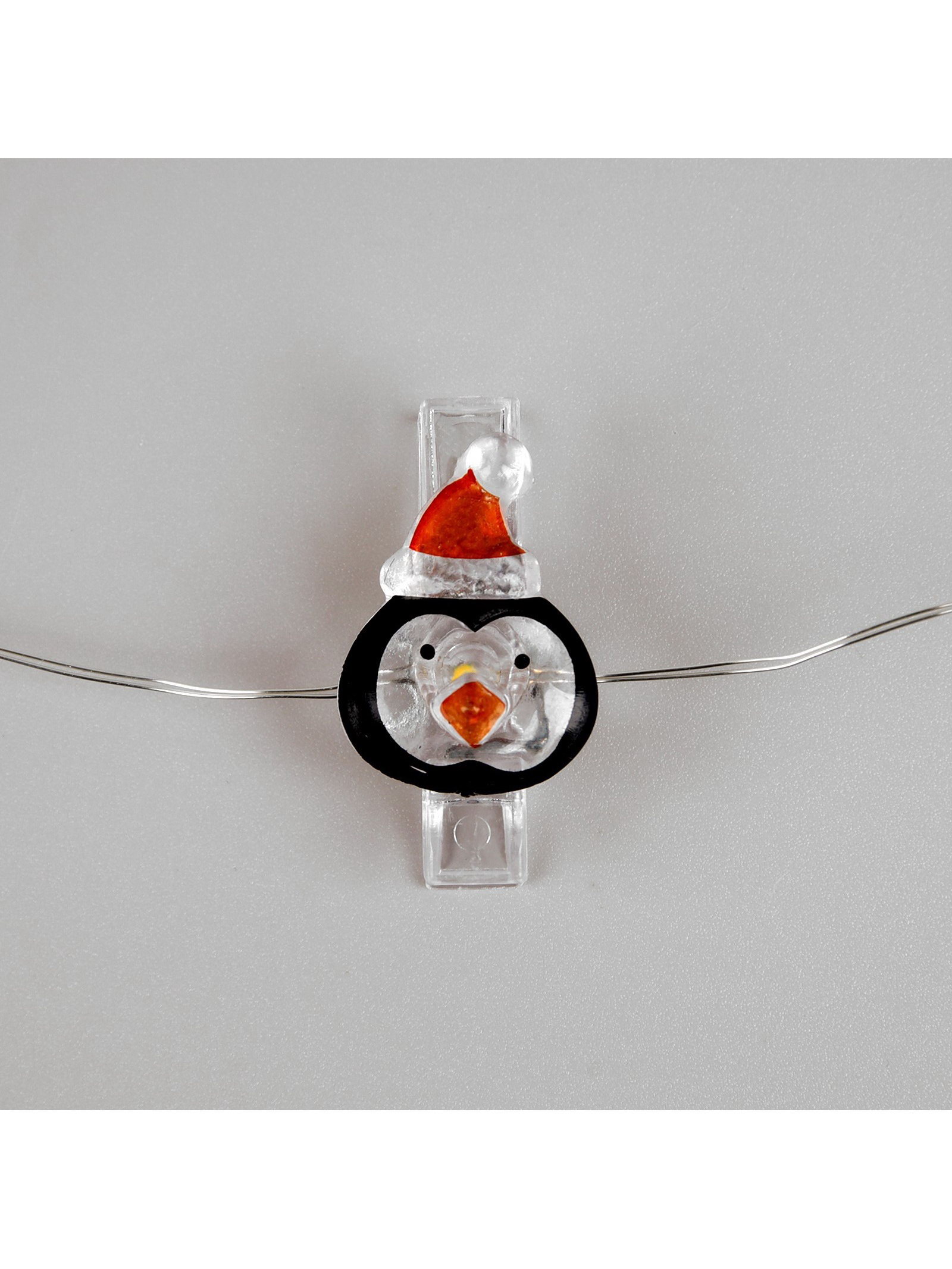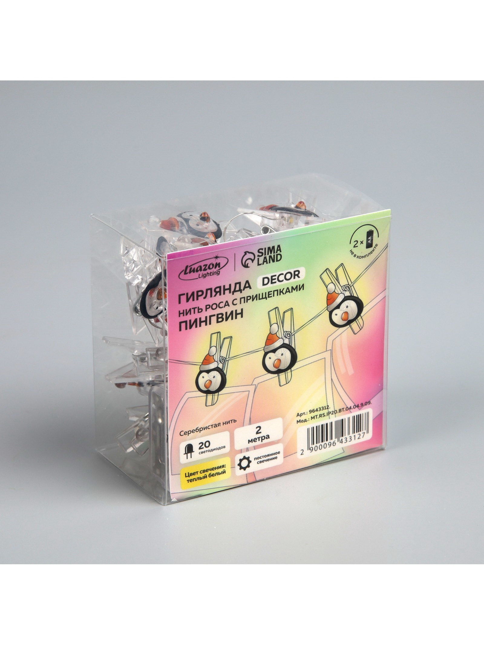 Гирлянда "Нить" 2 м роса с насадками "Прищепки-пингвин", IP20, серебристая нить, 20 LED, батарейки ААх2, 5x8x3 см., Luazon Lighting, Китай