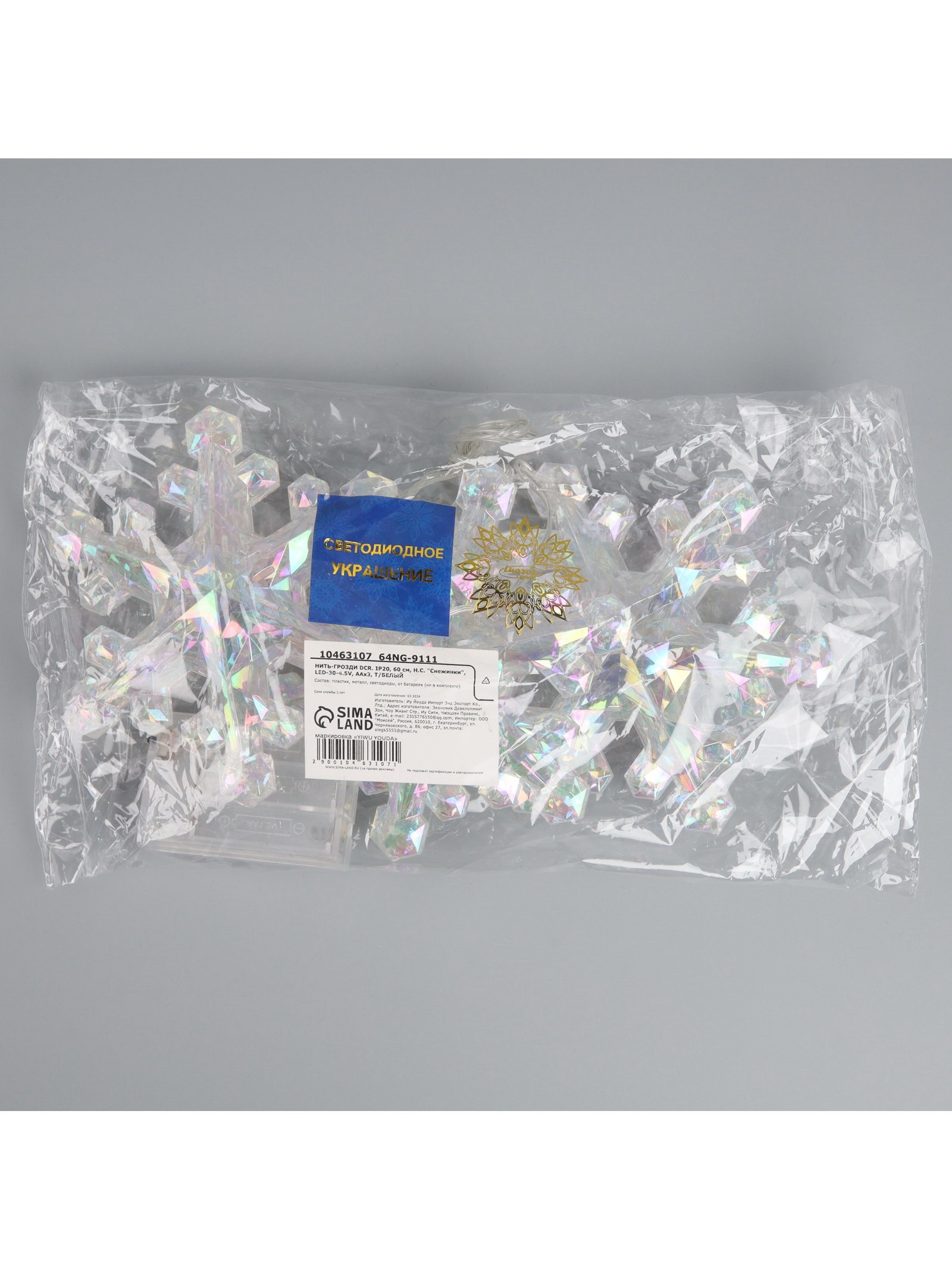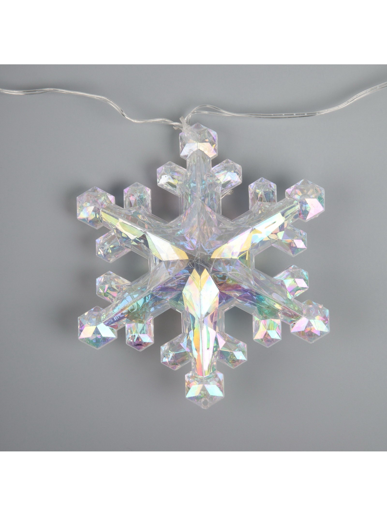 Гирлянда "Нить-грозди" 120 см, прозрачная нить, "Снежинки", 30 LED, 4.5В, от батареек AAх3, свечение тёплое белое, 60х60х6 см., Luazon Lighting, Китай