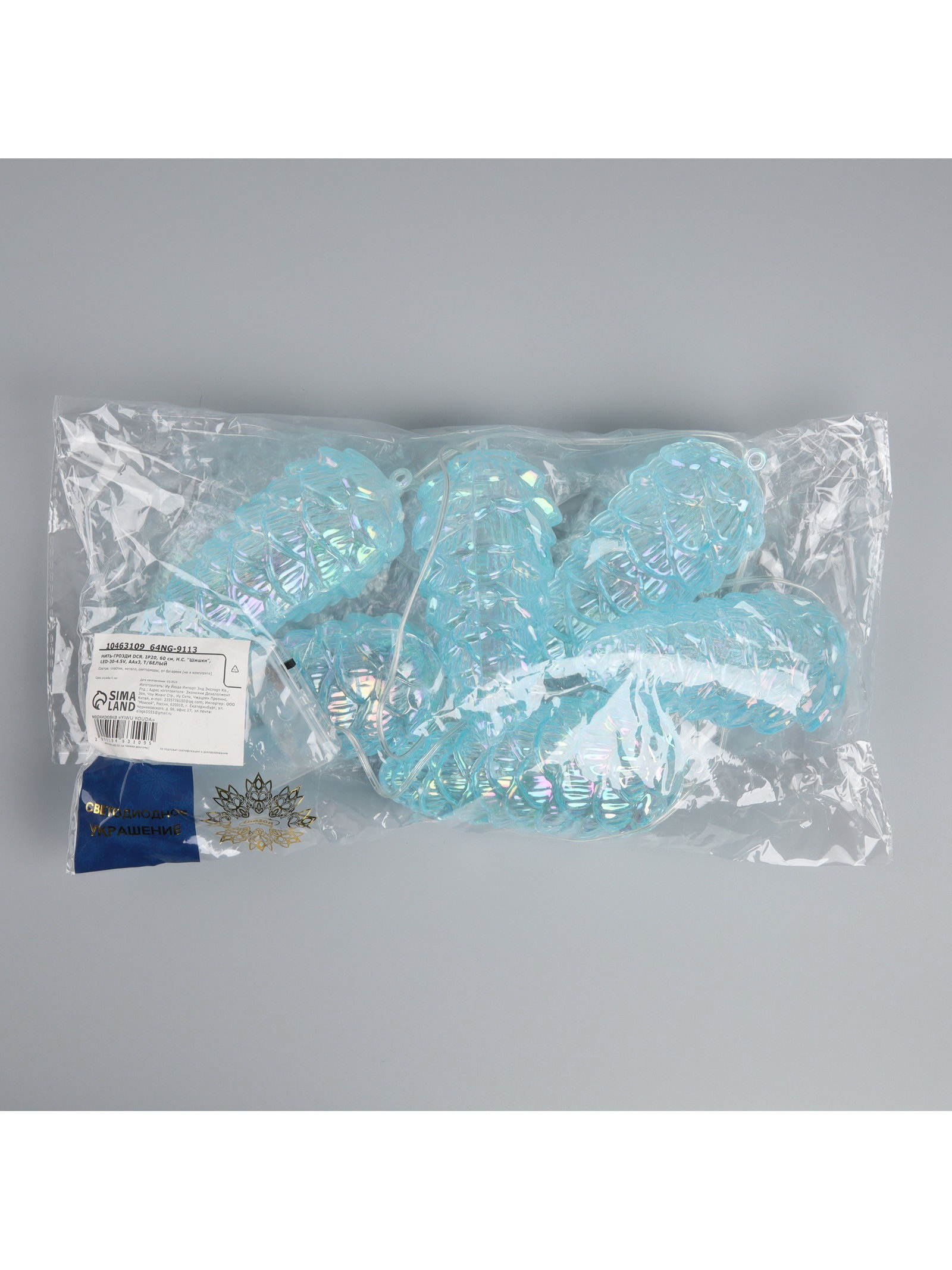 Гирлянда "Нить-грозди" 230 см, прозрачная нить, "Шишки", 30 LED, 4.5 В, от батареек AAх3, свечение тёплое белое, 60х60х10 см., Luazon Lighting, Китай