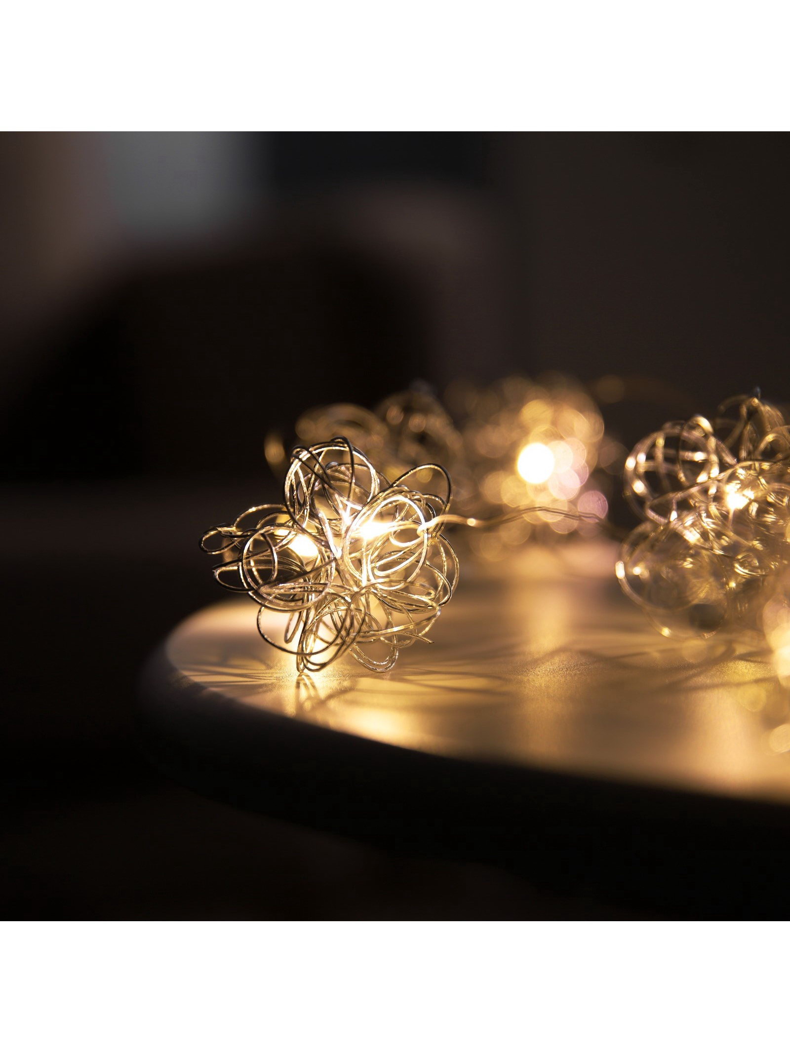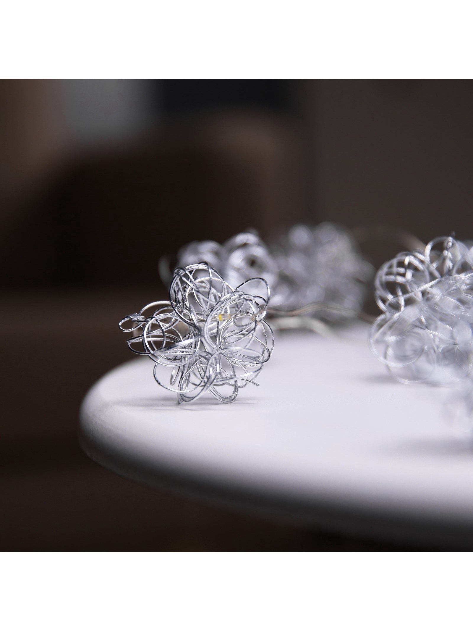 Гирлянда "Нить" роса 5 см с насадками "Снежки", IP20, серебристая нить, 10 LED, от батареек ААx2, свечение тёплое белое, 5х5х9 см., Luazon Lighting, Китай