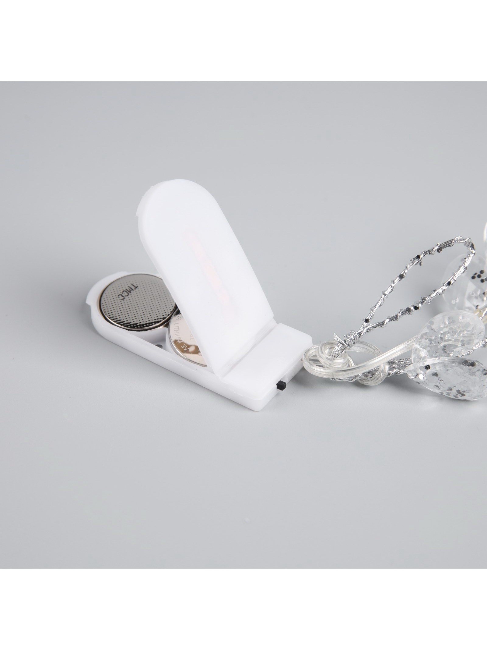Гирлянда "Мишура" 1.2 м, роса с насадками "Кристаллы", IP20, серебристая нить, 20 LED, от батареек CR2032x2, свечение тёплое белое, 2x120x1 см., Luazon Lighting, Китай