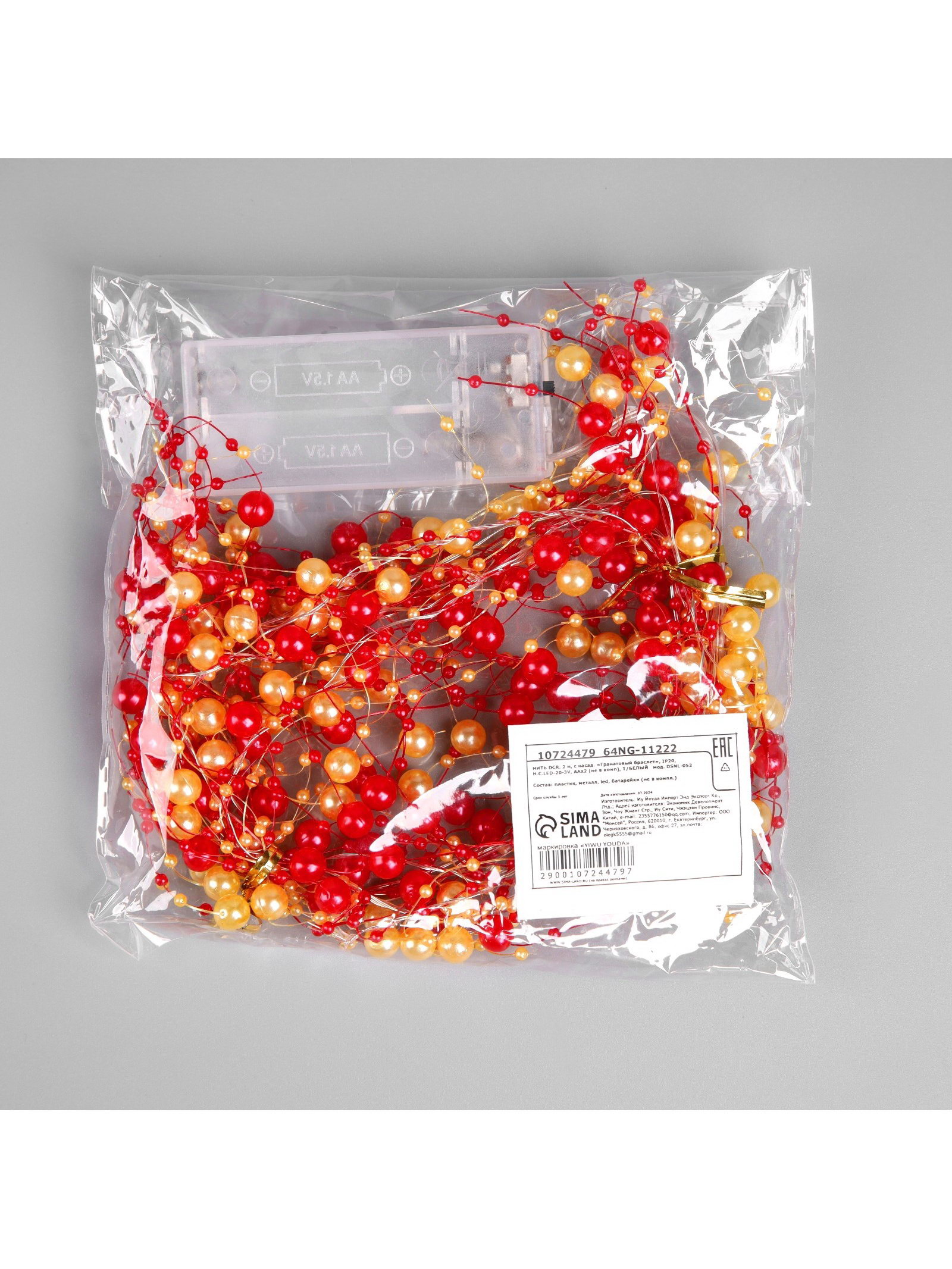 Гирлянда "Нить" 2 м, роса с насадками "Гранатовый браслет", IP20, серебристая нить, 20 LED, от батареек ААx2, свечение тёплое белое, 6x6x8 см., Luazon Lighting, Китай
