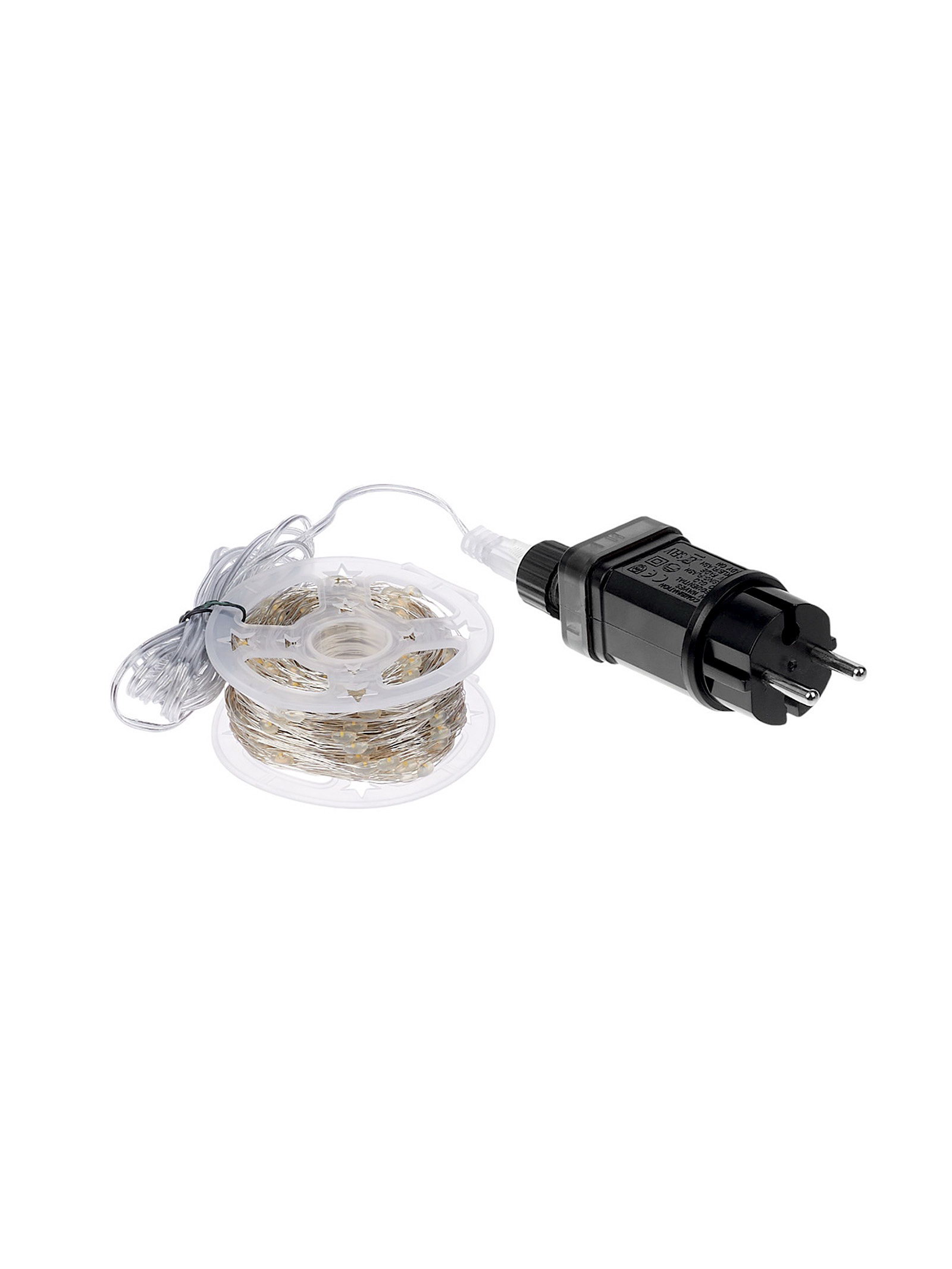 Гирлянда "Нить" 50 м роса, IP44, серебристая нить. 500 LED, пульт, 36 В, свечение тёплое белое, 7x14x10 см., Luazon Lighting, Китай