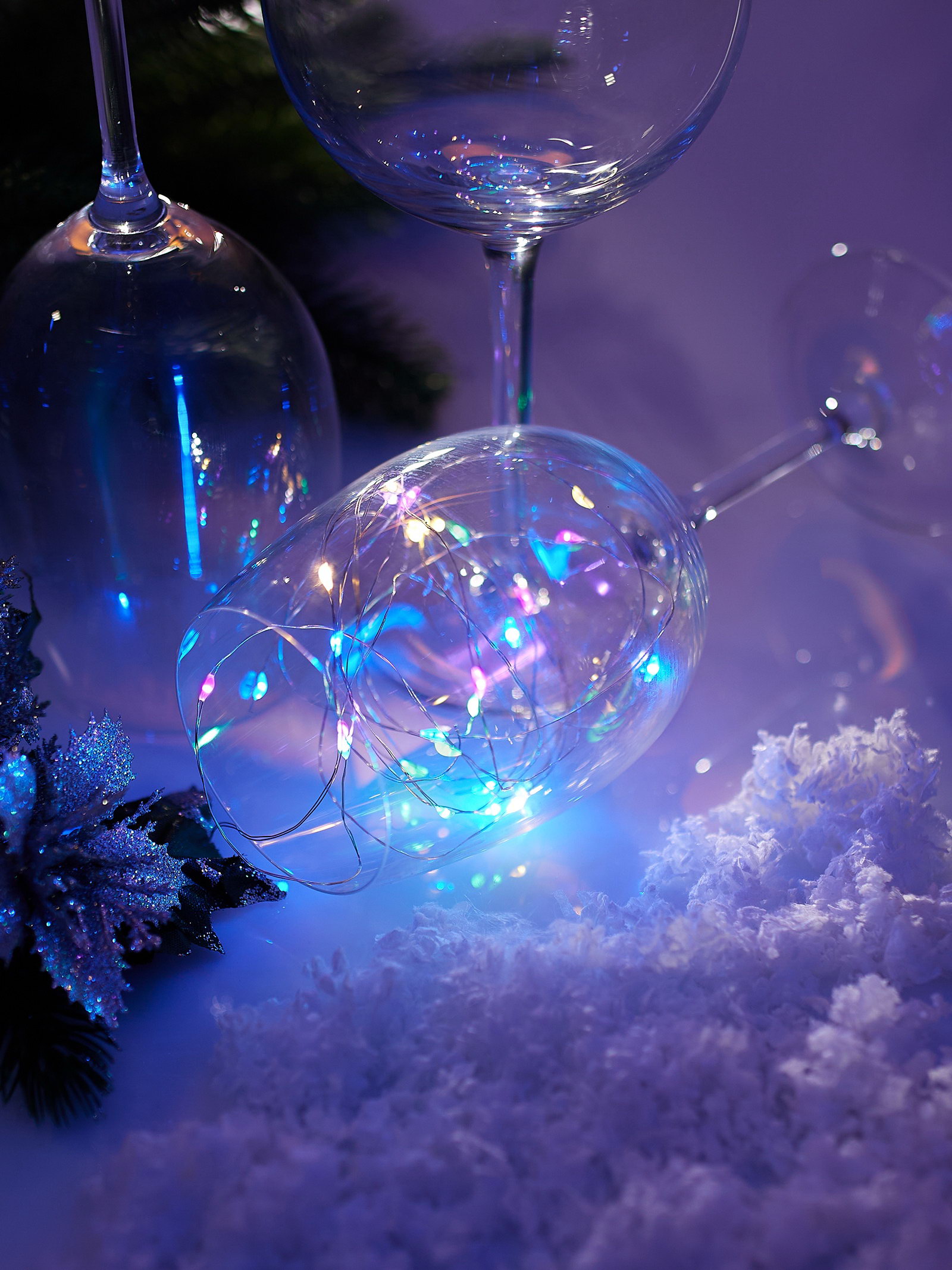 Гирлянда "Нить" 3 м, роса, IP20, серебристая нить. 30 LED, от батареек AG13x3, 3 режима, свечение мульти, 5x7x1 см., Luazon Lighting, Китай