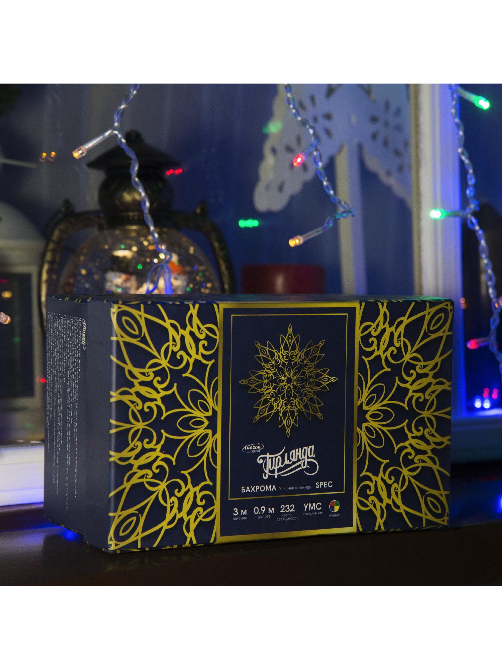 Гирлянда "Бахрома" 3 x 0.9 м, IP44, УМС, прозрачная нить, 232 LED, свечение мульти, 220 В, 8x10x20 см., Luazon Lighting, Китай