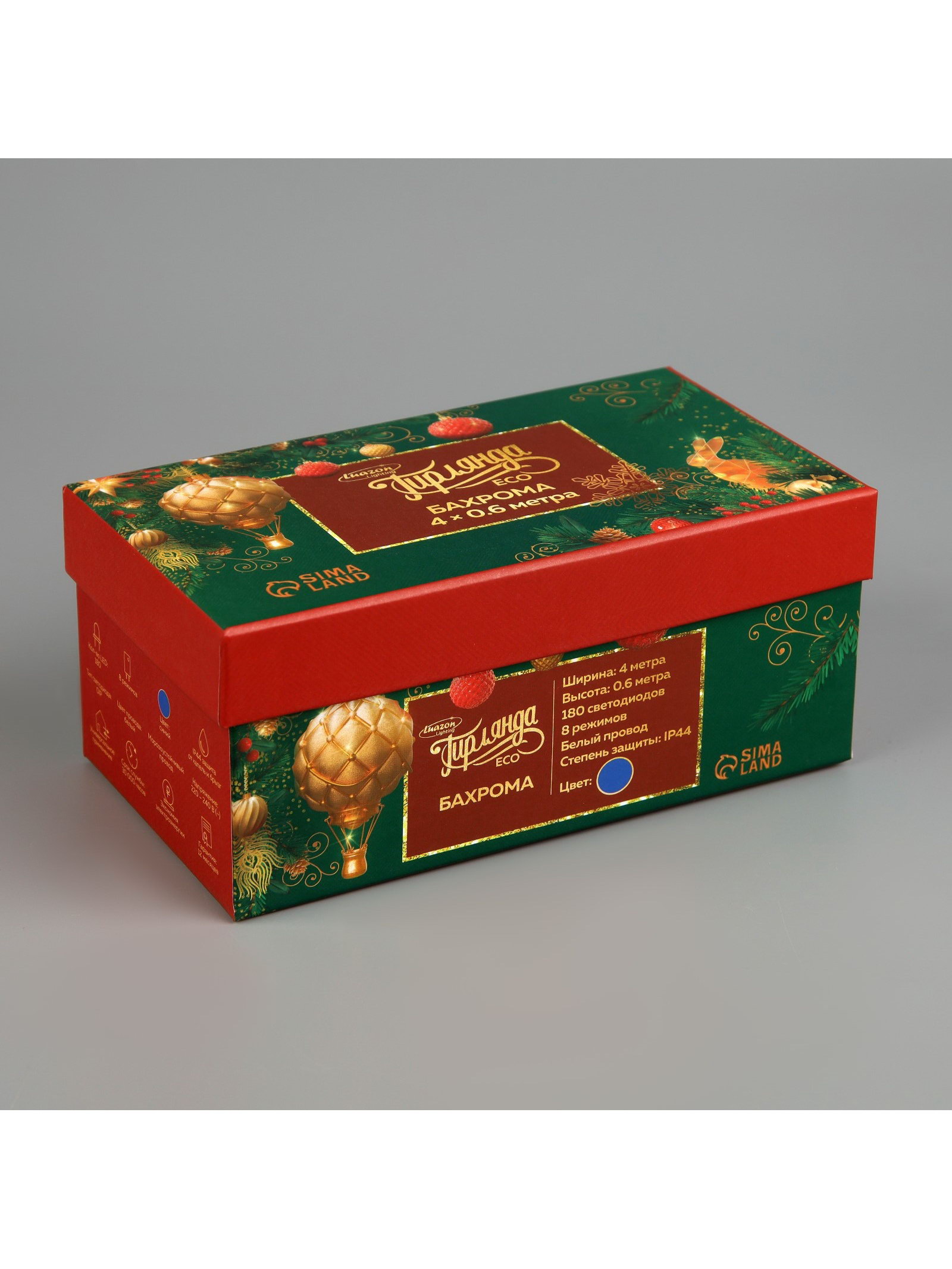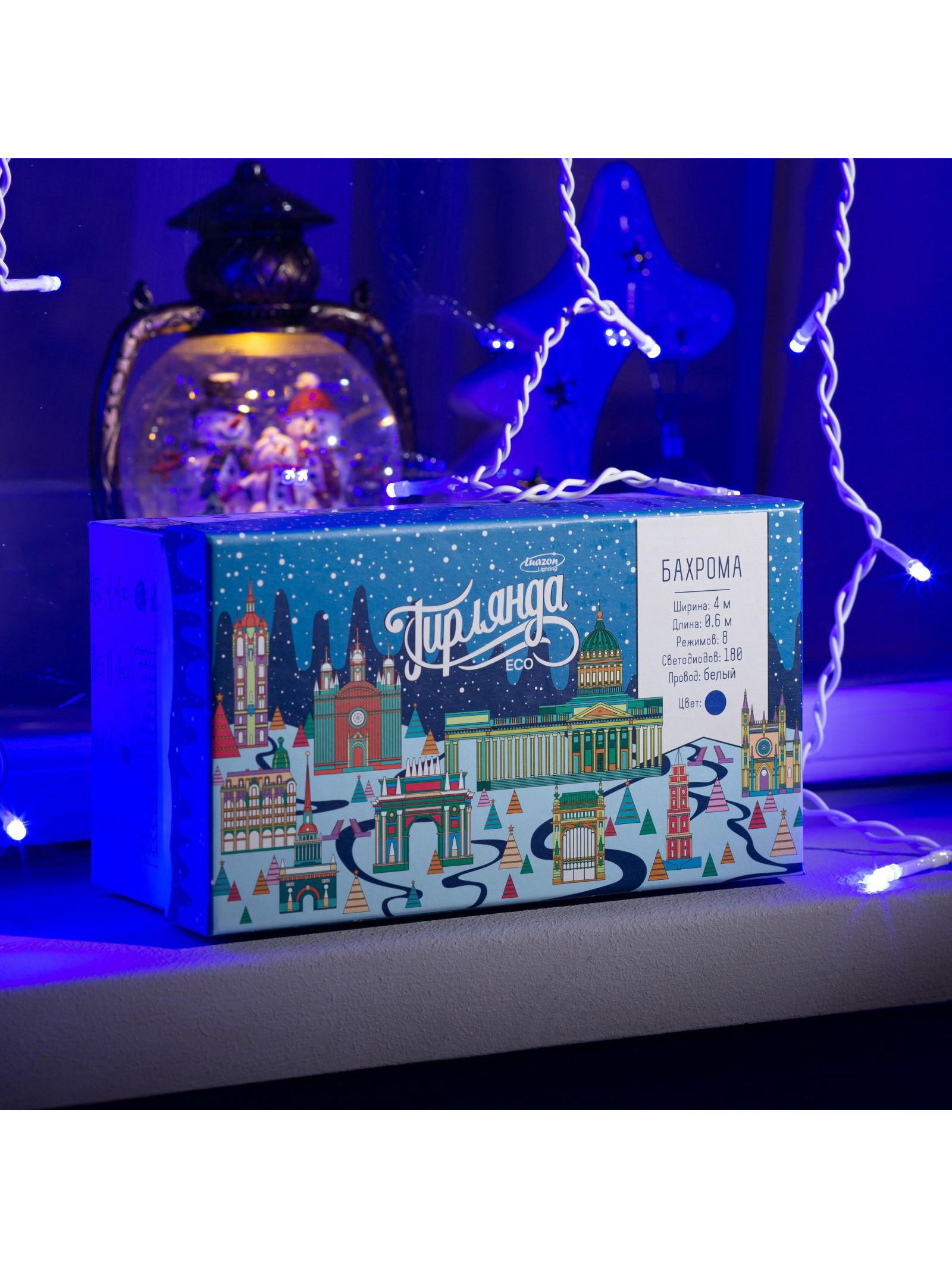 Размер упаковки: 11 x 8.5 x 19 см. Применение: Уличное Вид гирлянды: Бахрома Вид лампы: Светодиодная Размер, м: 4 x 0.6 Цвет свечения: Синий Режим работы: Задаётся контроллером Наличие блока питания: Нет Насадки: Нет Количество режимов: 8 Цвет нити гирлянды: Белый Тип подключения: С контроллером tnved: 9405420000 tnved: 9405420000 Гарантийный срок, мес.: 12 Количество ламп: 180 Вид насадки: Без насадок Вид светодиода: DIP Ширина, м: 4 Высота, м: 0.6 Степень защиты: IP44 Тематика праздника: Новый год Материал нити: ПВХ Необходимая комплектация: Не нужна Температурный режим: От -30 до +35 ℃ Тип питания: От сети 220 В