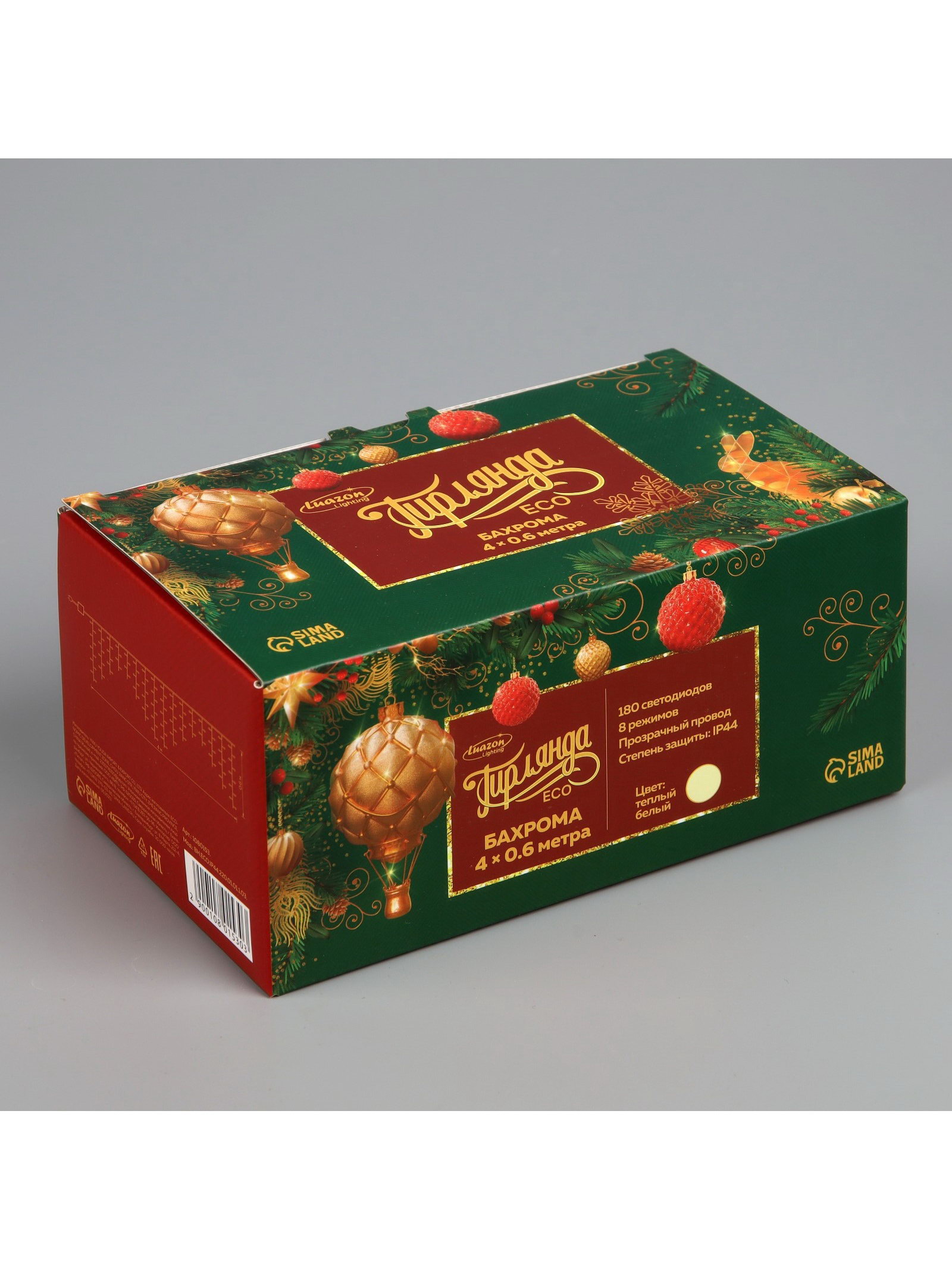 Гирлянда "Бахрома" 4x0.6 м, IP44, прозрачная нить, 180 LED, свечение тёплое белое, 8 режимов, 220 В, 19x11x8.5 см., Luazon Lighting, Китай