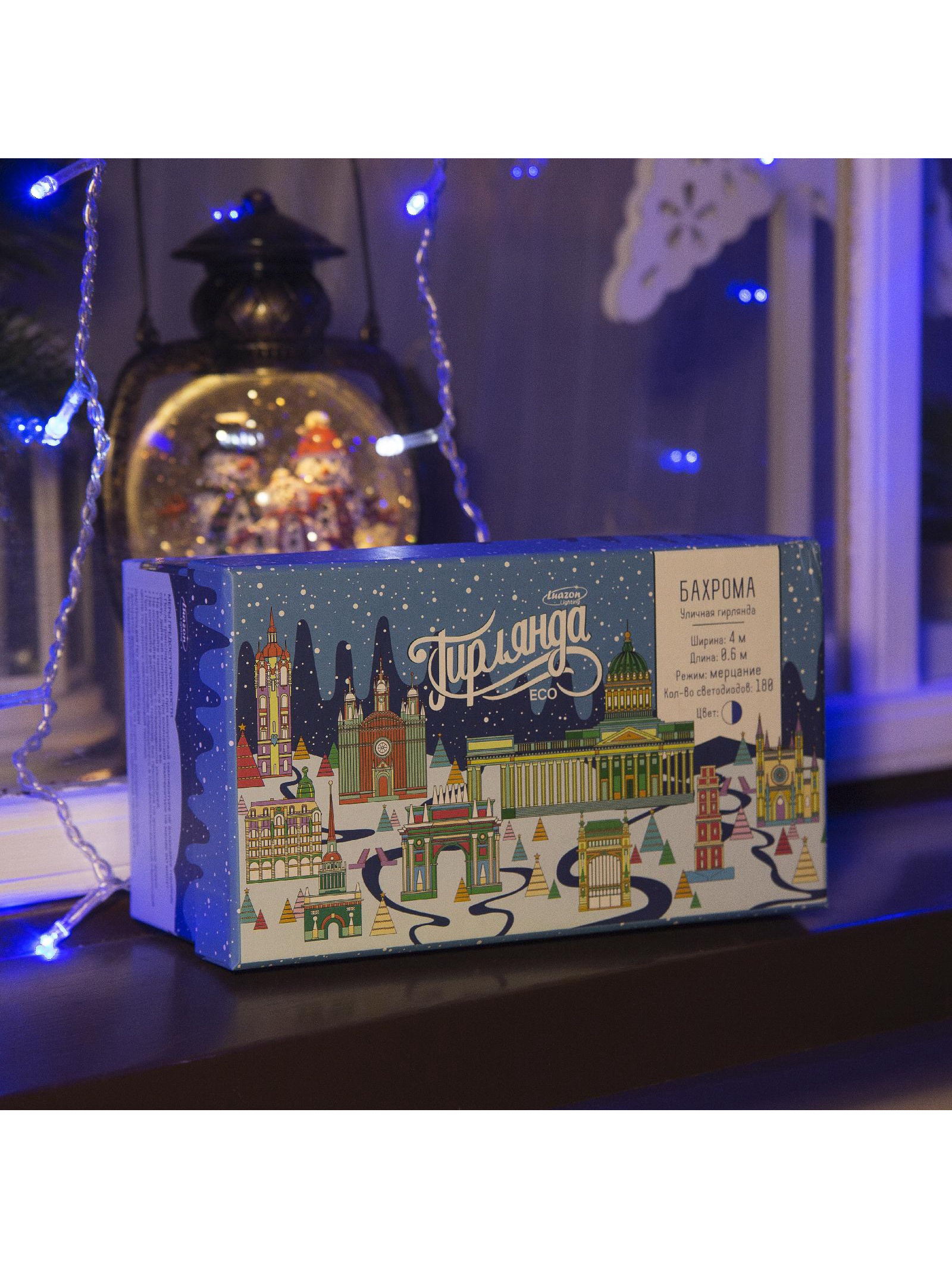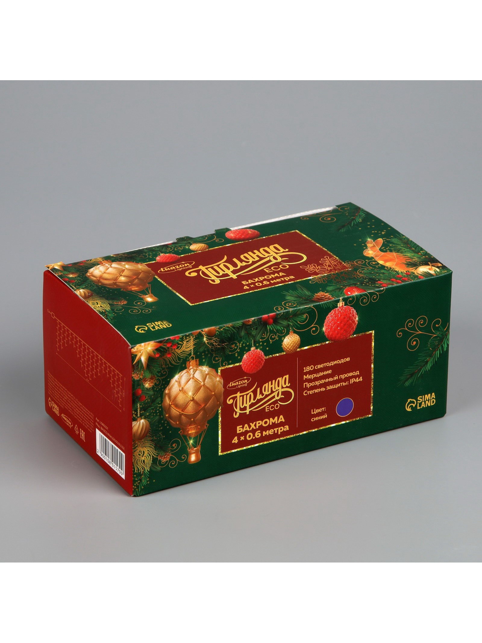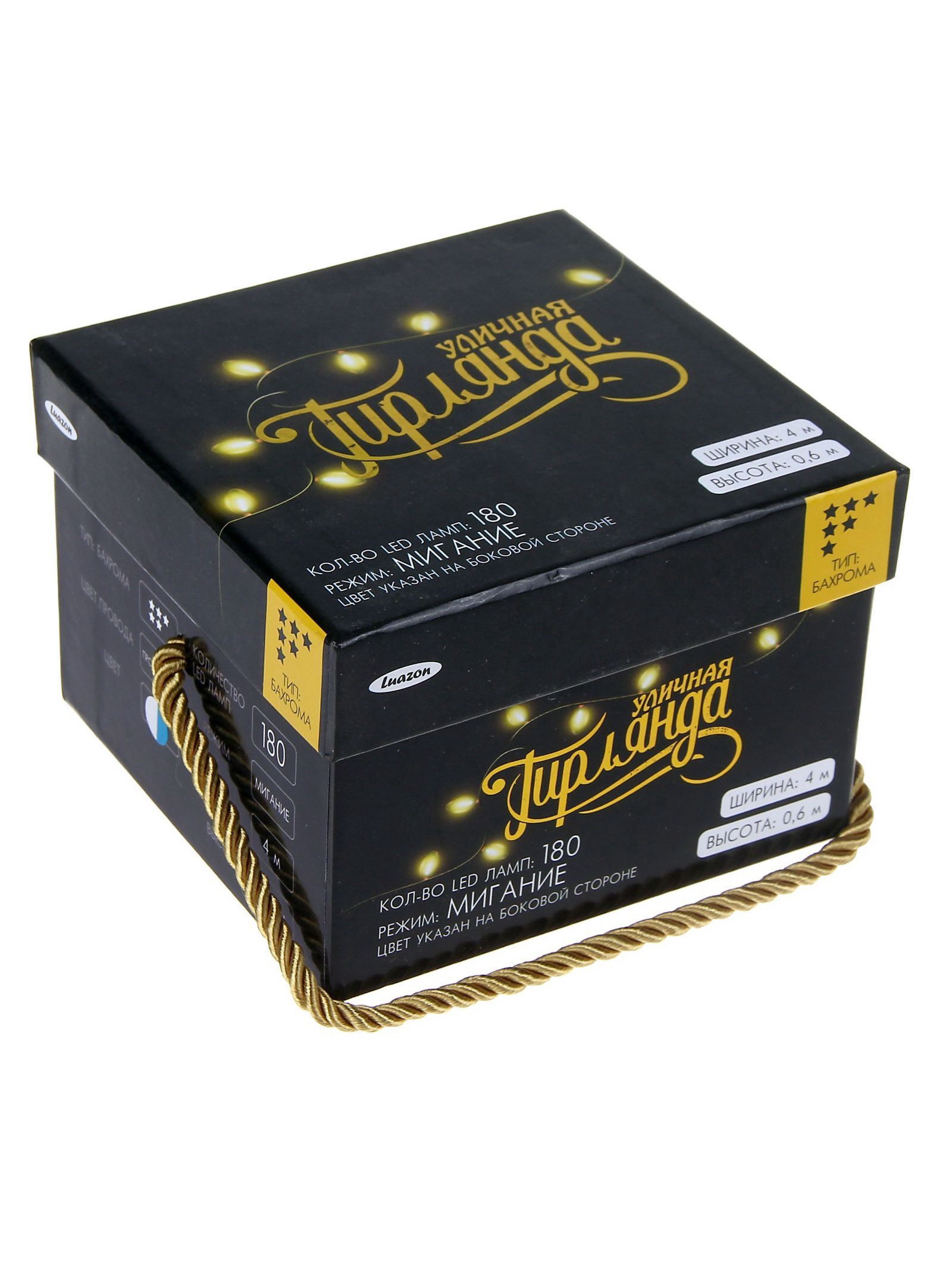 Размер упаковки: 11 x 8.5 x 19 см. Цвет нити гирлянды: Прозрачный Вид лампы: Светодиодная Применение: Уличное Насадки: Нет Размер, м: 4 x 0.6 Вид гирлянды: Бахрома Наличие блока питания: Нет Количество режимов: 1 Режим работы: Мерцание Тип подключения: Шнур питания tnved: 9405310000 Гарантийный срок, мес.: 12 Количество ламп: 180 Вид насадки: Без насадок Вид светодиода: DIP Ширина, м: 4 Высота, м: 0.6 Степень защиты: IP44 Тематика праздника: Новый год Материал нити: ПВХ Необходимая комплектация: Не нужна Температурный режим: От -30 до +35 ℃ Тип питания: От сети 220 В Цвет свечения: Синий