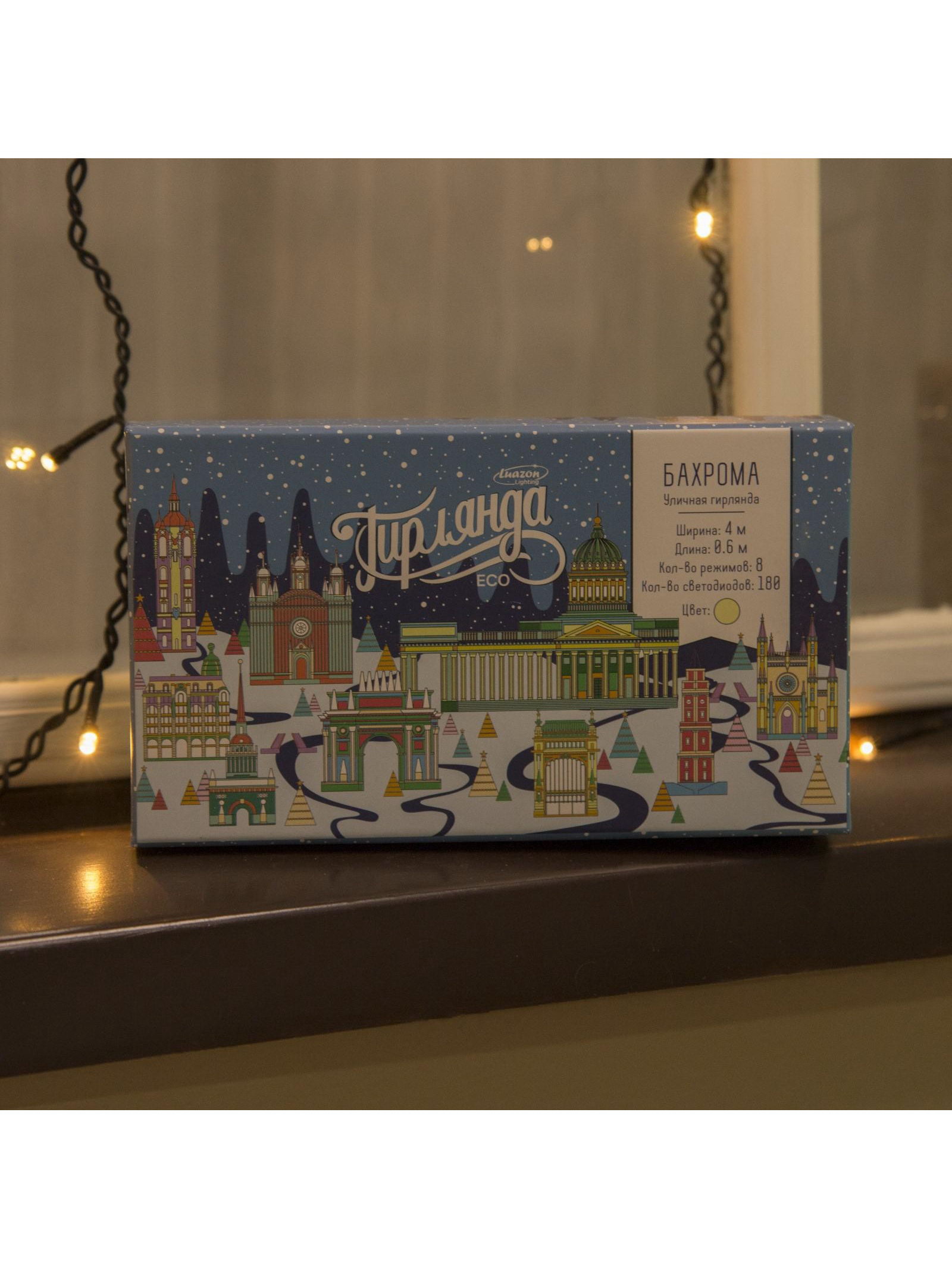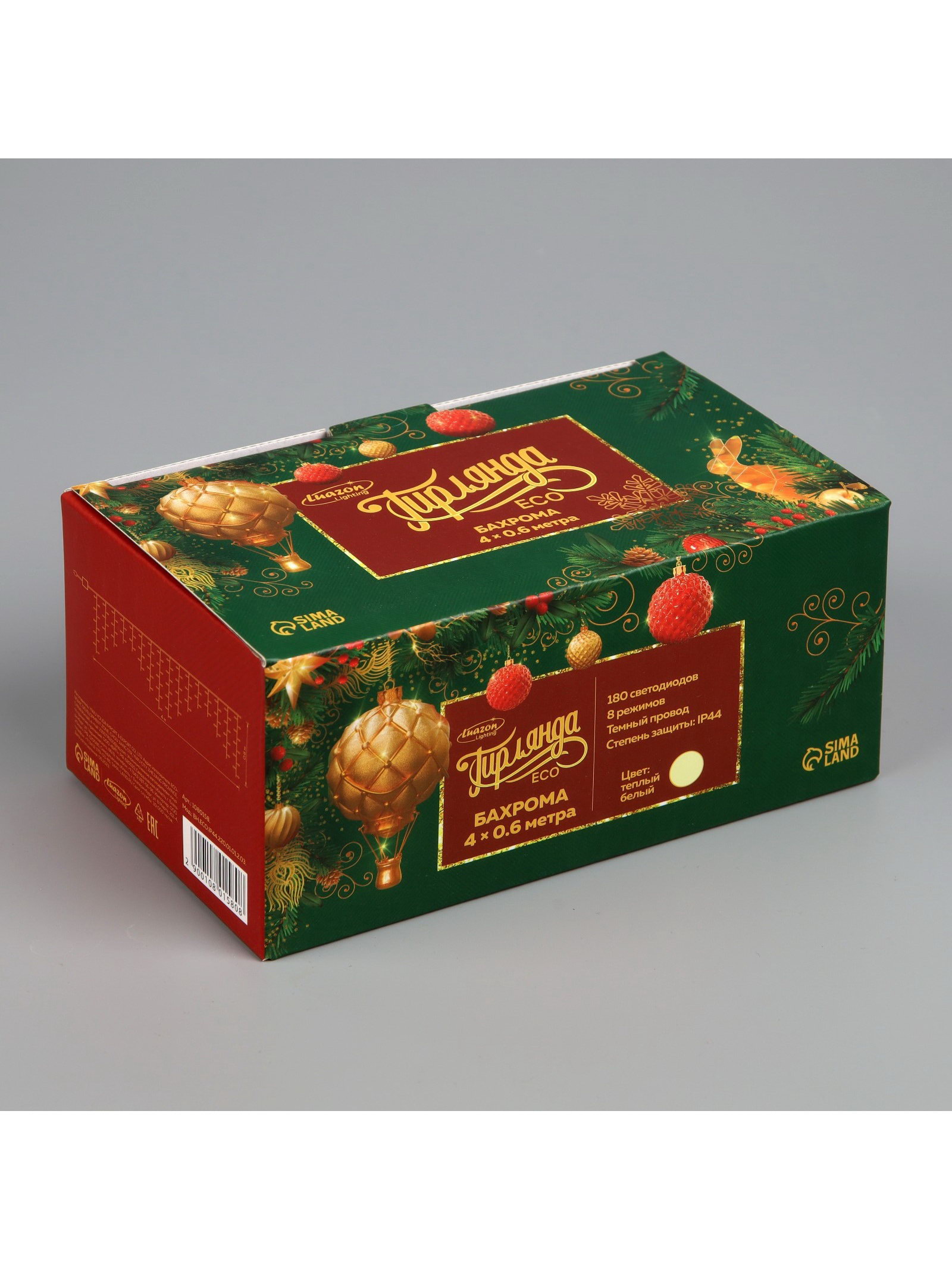 Размер упаковки: 10 x 8 x 18 см. Цвет нити гирлянды: Тёмный Применение: Уличное Вид лампы: Светодиодная Насадки: Нет Размер, м: 4 x 0.6 Вид гирлянды: Бахрома Цвет свечения: Тёплый белый Наличие блока питания: Нет Количество режимов: 8 Тип подключения: С контроллером Режим работы: Задаётся контроллером tnved: 9405310000 Гарантийный срок, мес.: 12 Количество ламп: 180 Вид насадки: Без насадок Вид светодиода: DIP Высота, м: 0.6 Ширина, м: 4 Степень защиты: IP44 Тематика праздника: Новый год Материал нити: ПВХ Необходимая комплектация: Не нужна Температурный режим: От -30 до +35 ℃ Тип питания: От сети 220 В