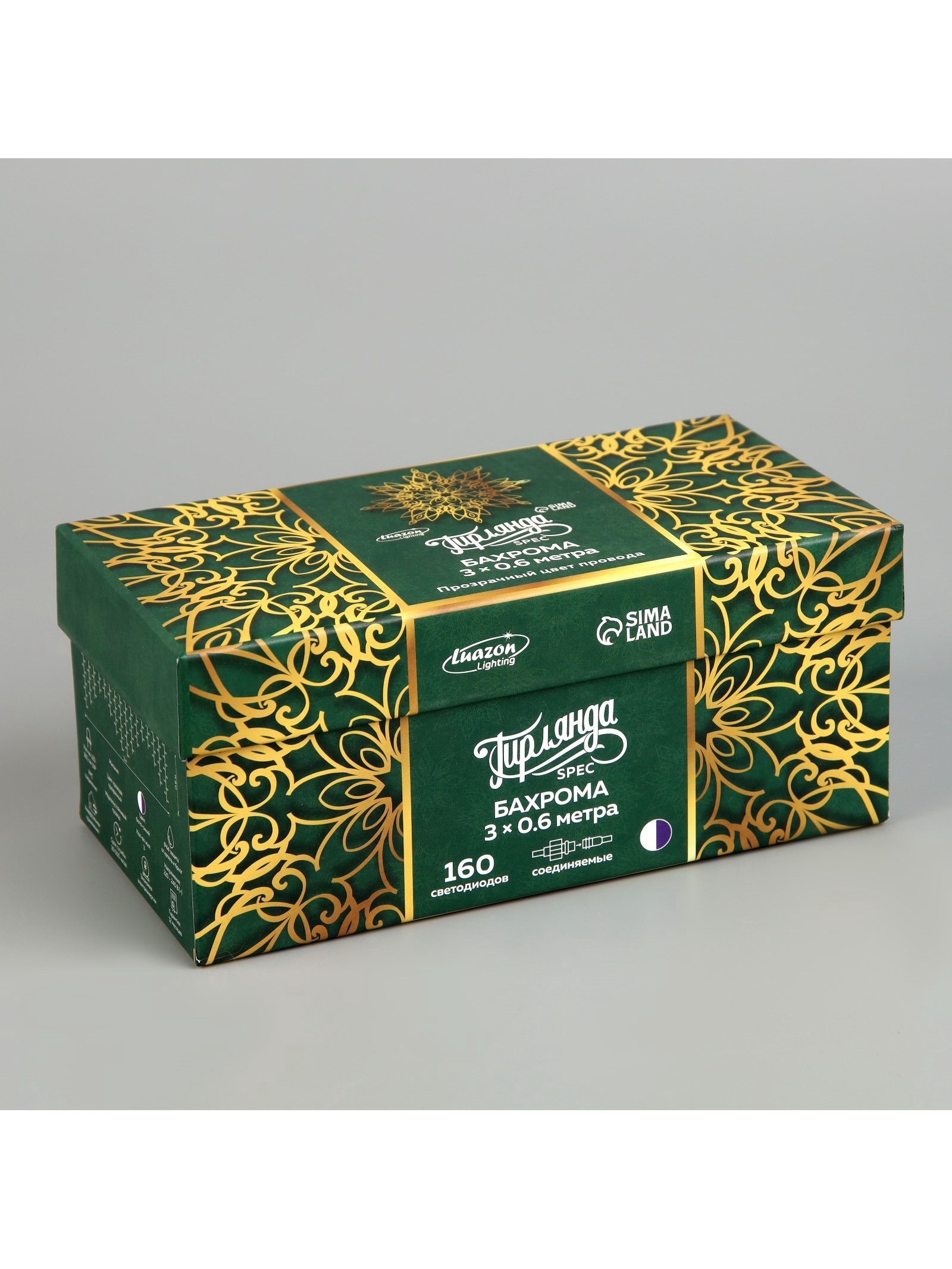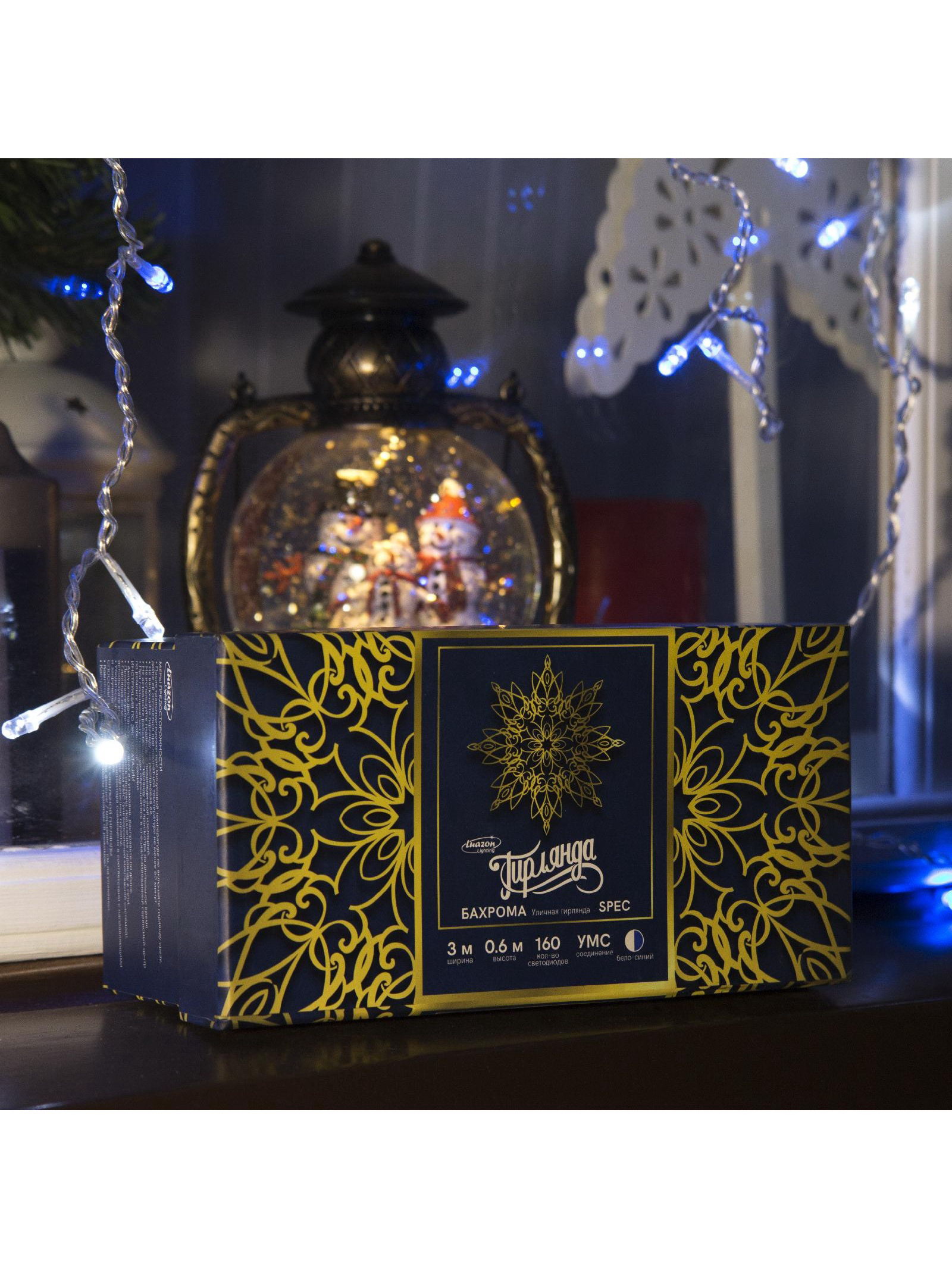 Гирлянда "Бахрома" 3 x 0.6 м, IP44, УМС, прозрачная нить, 160 LED, свечение бело-синее, мигание, 220 В, Luazon Lighting, Китай