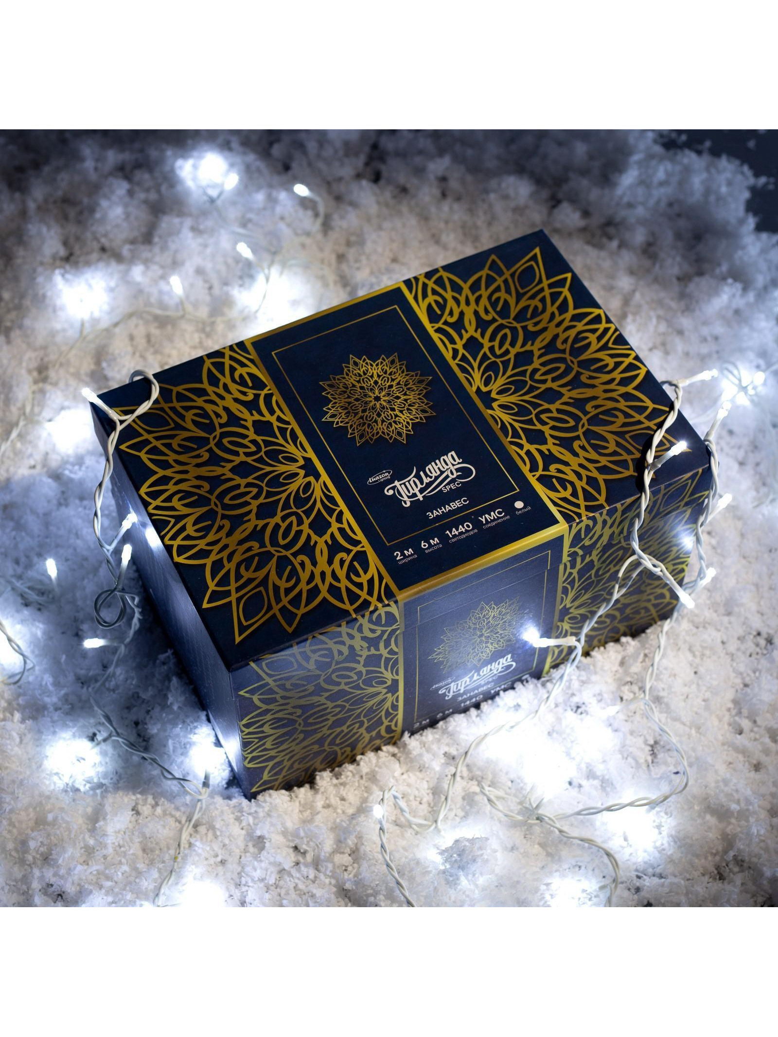Гирлянда "Занавес" 2 x 6 м, IP44, УМС, белая нить, 1440 LED, свечение белое, 220 В, 30x30x14 см., Luazon Lighting, Китай