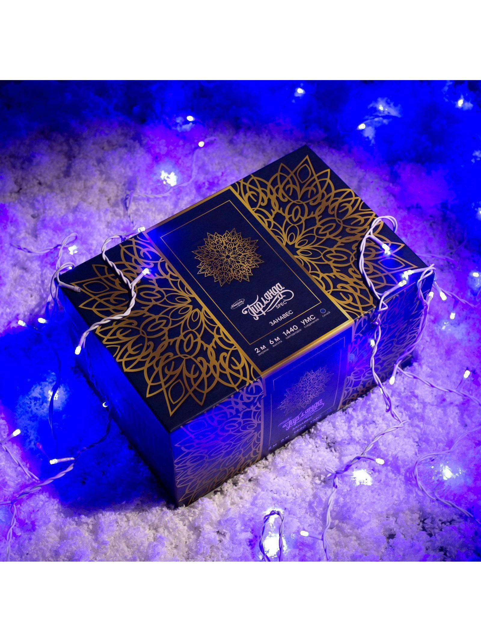 Гирлянда "Занавес" 2 x 6 м, IP44, УМС, белая нить, 1440 LED, свечение синее, 220 В, 30x30x14 см., Luazon Lighting, Китай