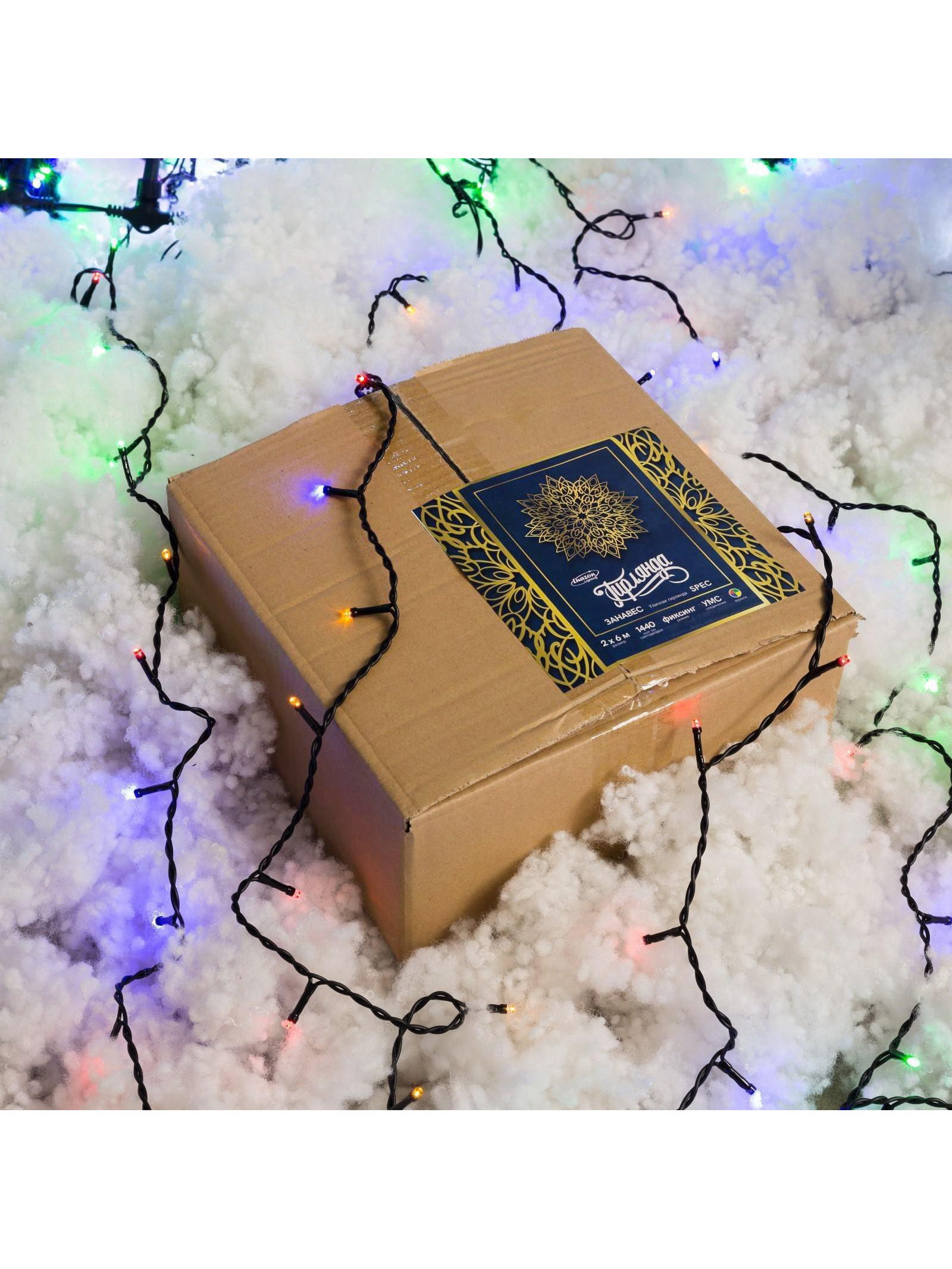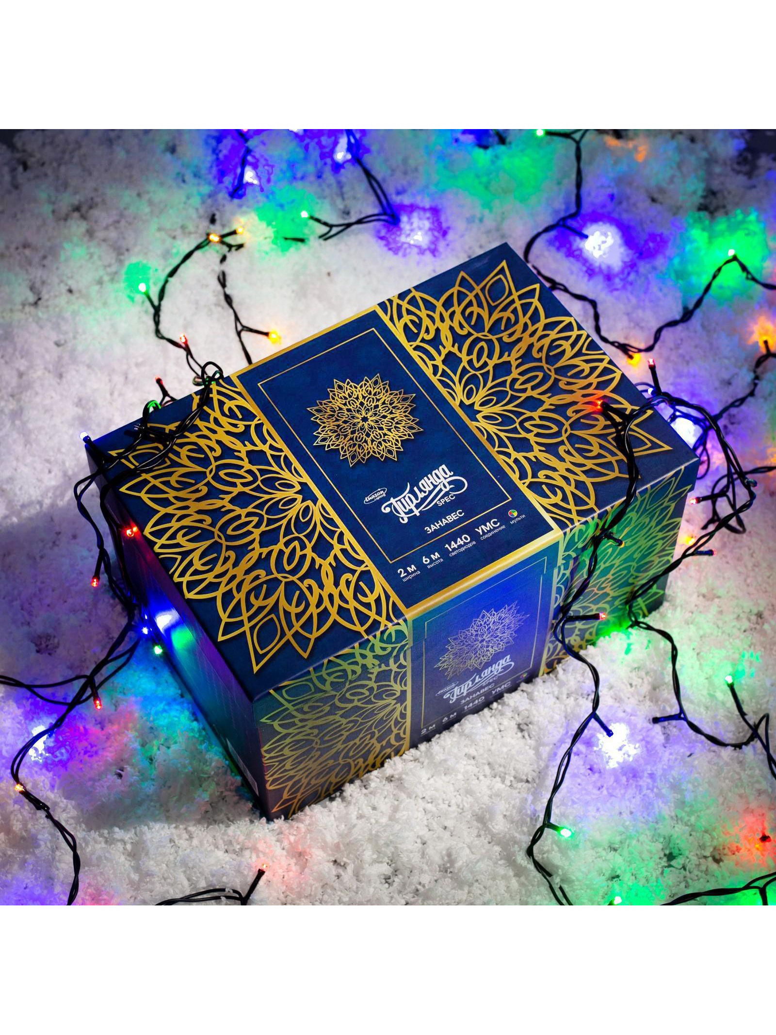 Гирлянда "Занавес" 2 x 6 м, IP44, УМС, тёмная нить, 1440 LED, свечение мульти, 220 В, 30x30x14 см., Luazon Lighting, Китай