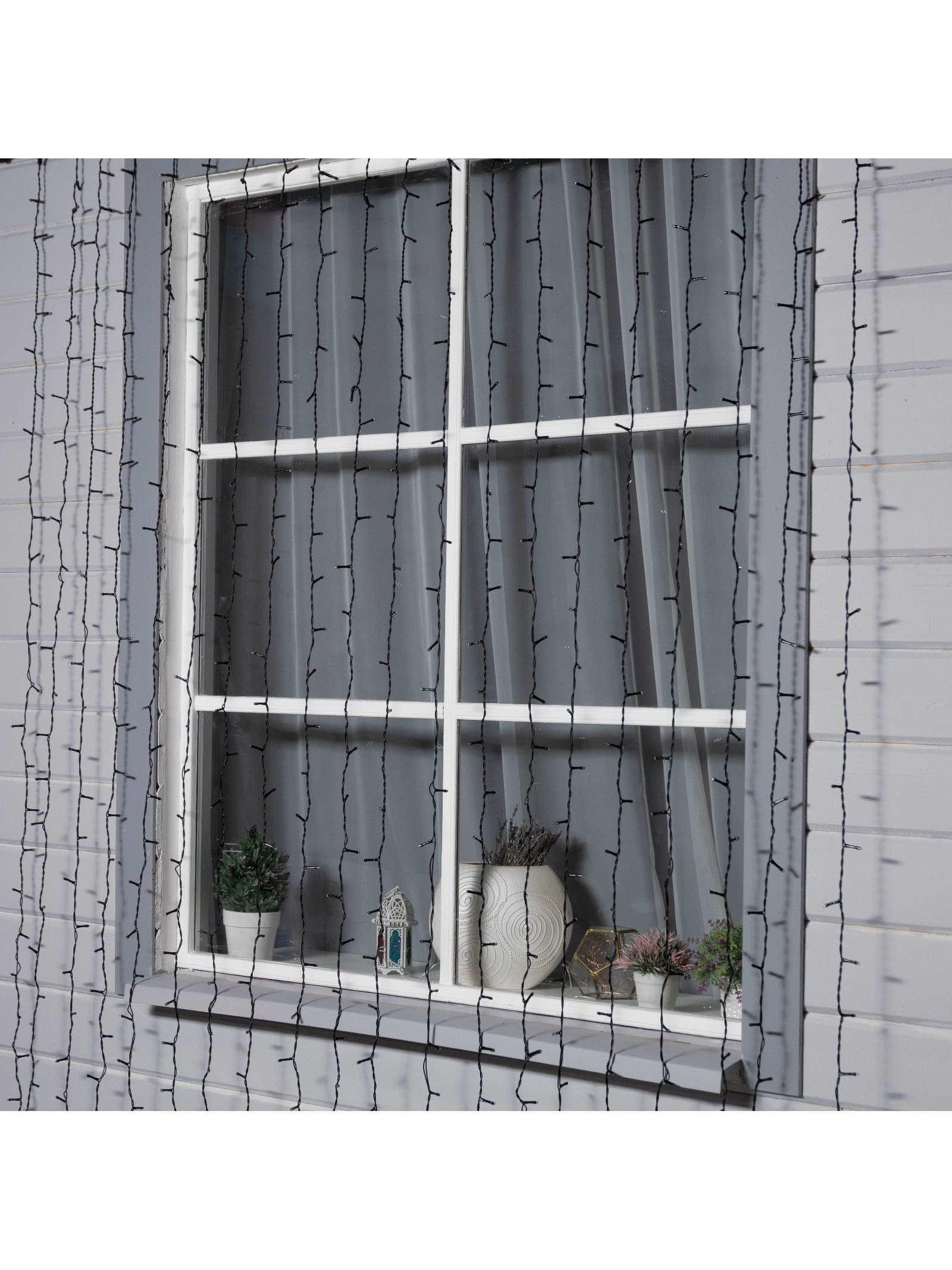 Гирлянда "Занавес" 2 x 9 м, IP44, УМС, тёмная нить, 1800 LED, свечение белое, 220 В, 30x30x14 см., Luazon Lighting, Китай