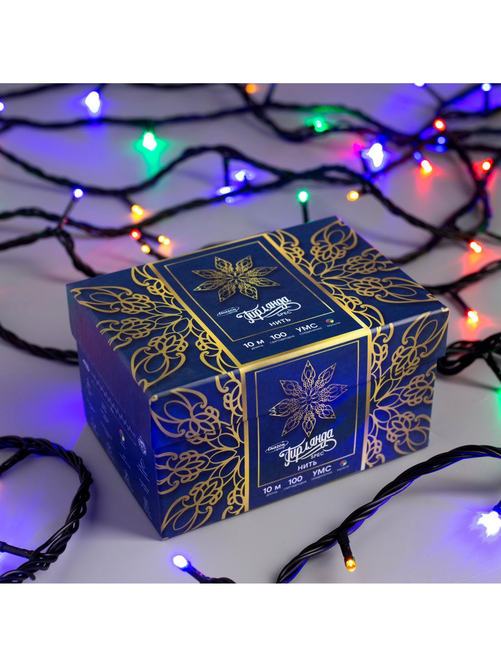 Гирлянда "Нить" 10 м, IP44, УМС, тёмная нить, 100 LED, свечение мульти, 220 В, 1000 см., Luazon Lighting, Китай