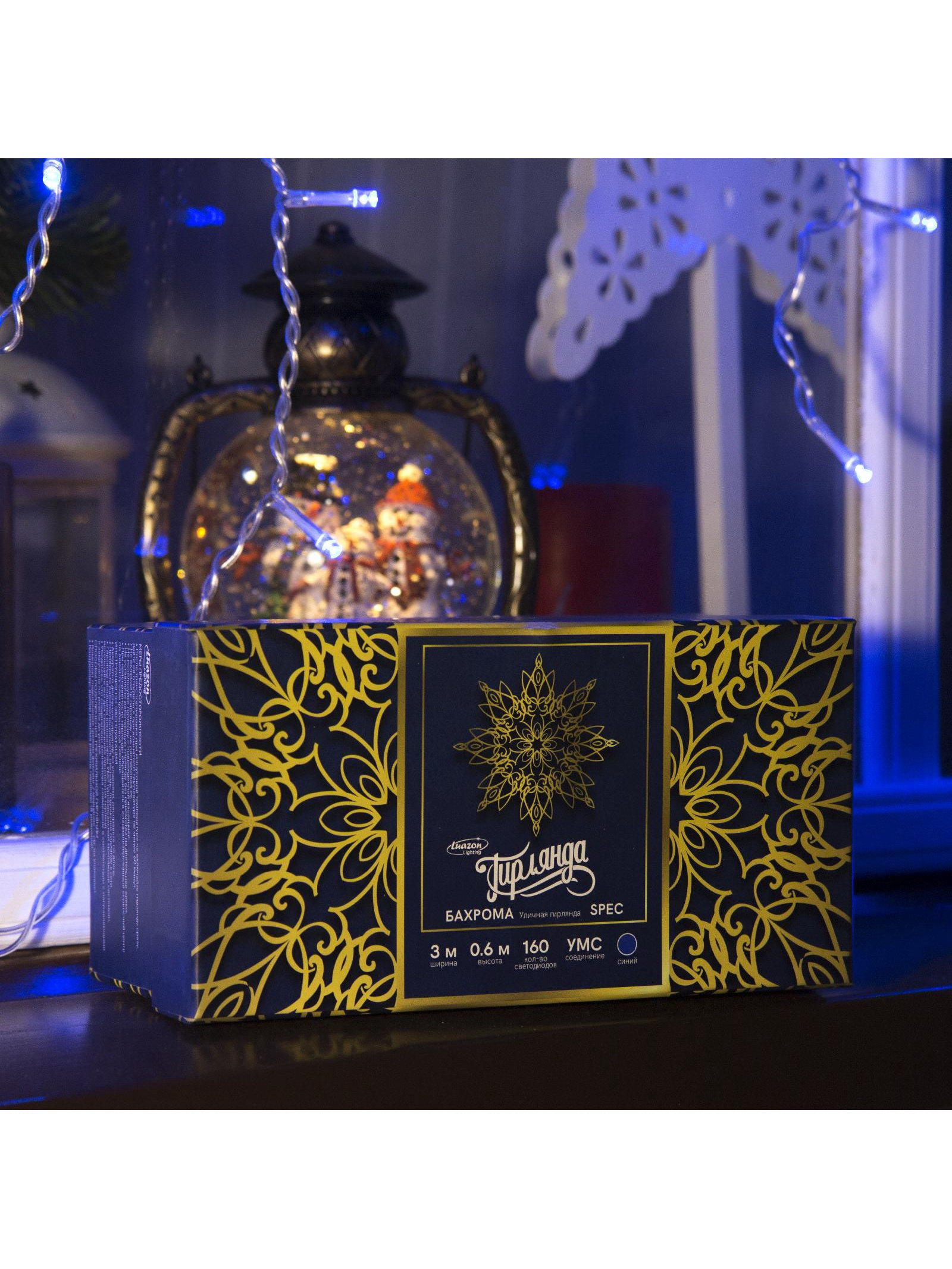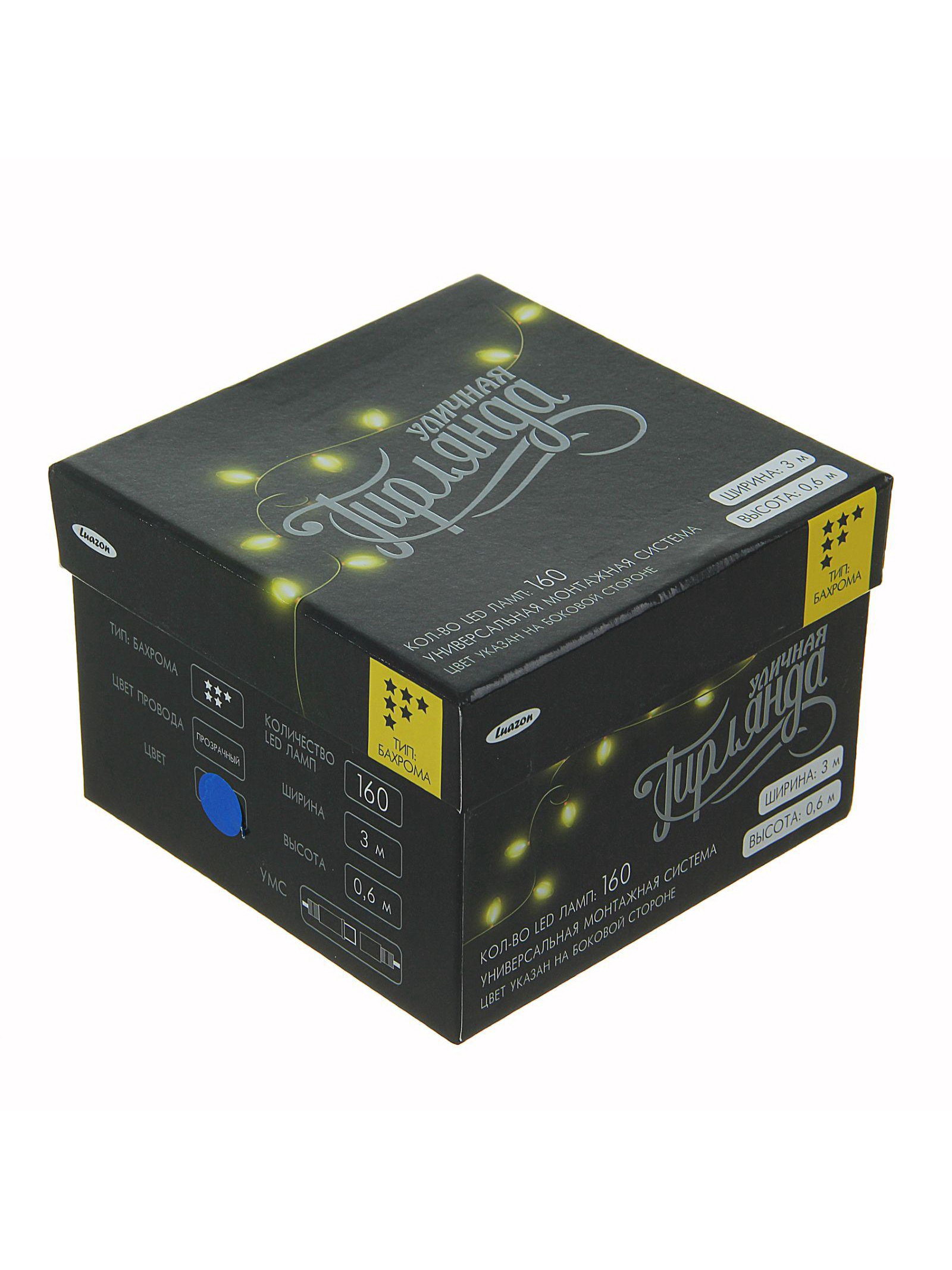 Гирлянда "Бахрома" 3 x 0.6 м, IP44, УМС, прозрачная нить, 160 LED, свечение синее, 220 В, 8x9x18 см., Luazon Lighting, Китай