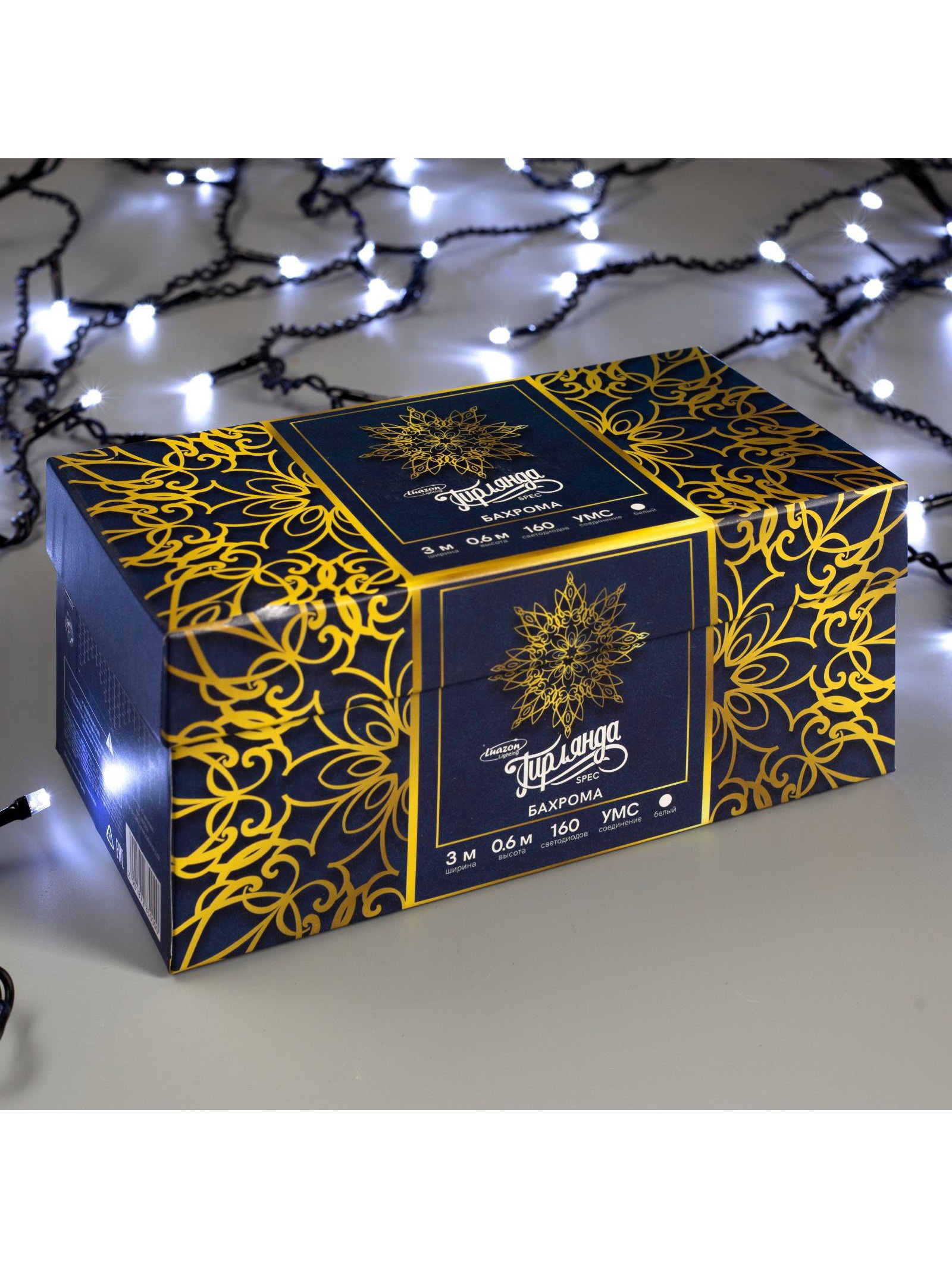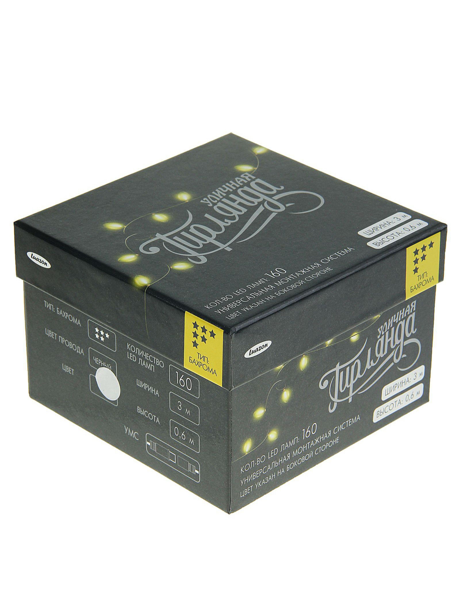 Гирлянда "Бахрома" 3 x 0.6 м, IP44, УМС, тёмная нить, 160 LED, свечение белое, 220 В, Luazon Lighting, Китай