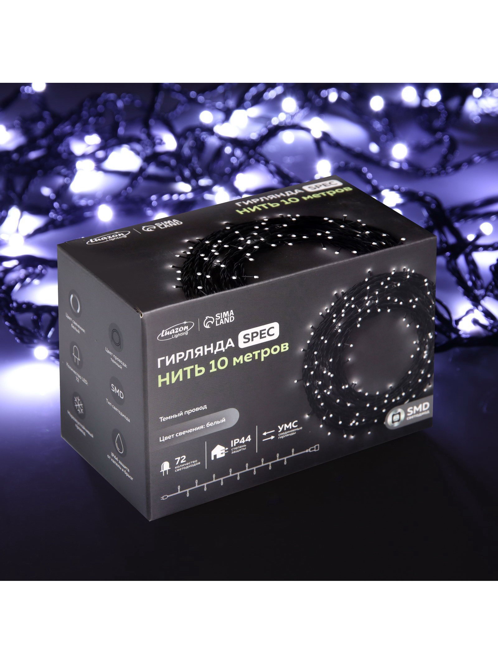 Гирлянда "Нить" 10 м, IP44, УМС, тёмная нить, 72 SMD-LED, свечение белое, 220 В, Luazon Lighting, Китай