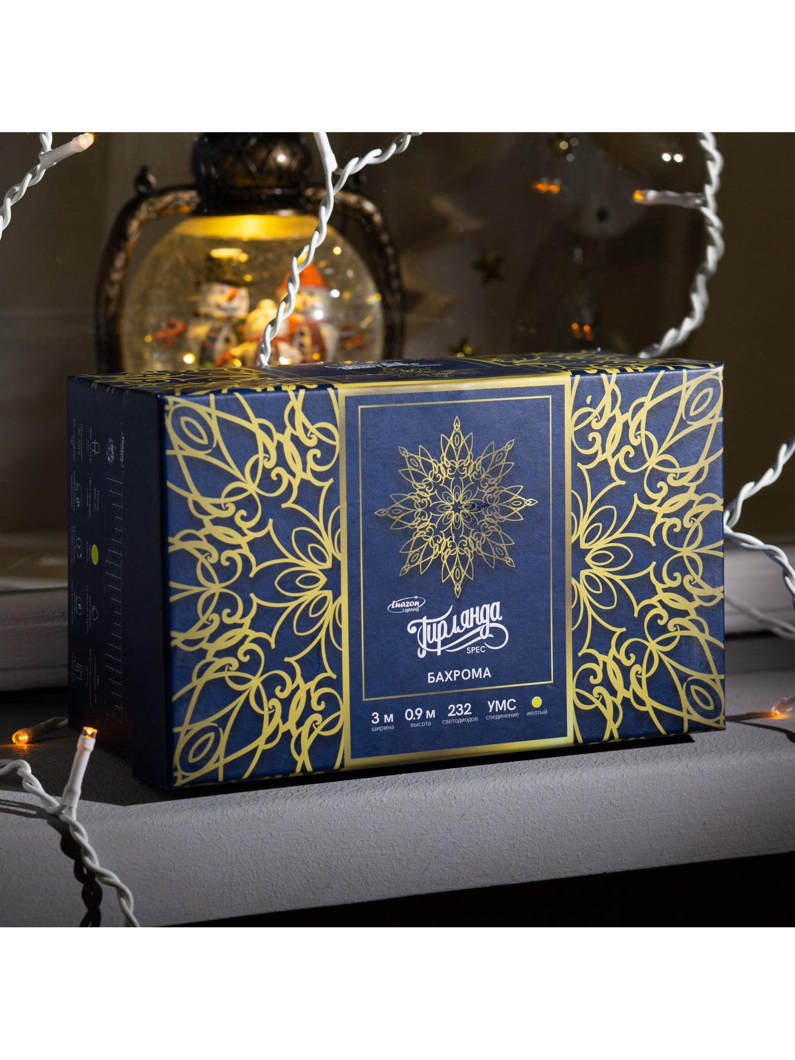 Гирлянда "Бахрома" 3 x 0.9 м, IP44, УМС, белая нить, 232 LED, свечение жёлтое, 220 В, Luazon Lighting, Китай