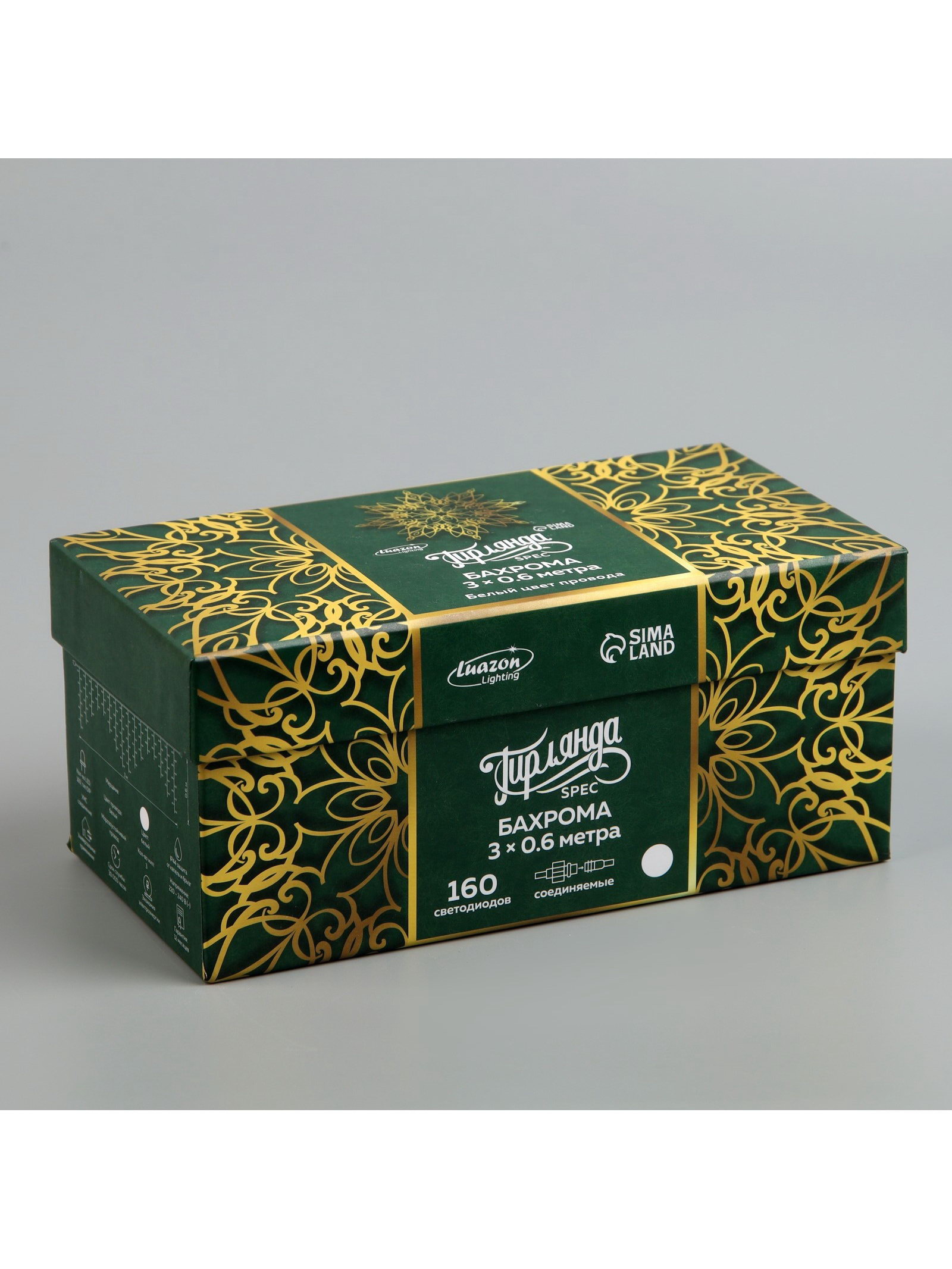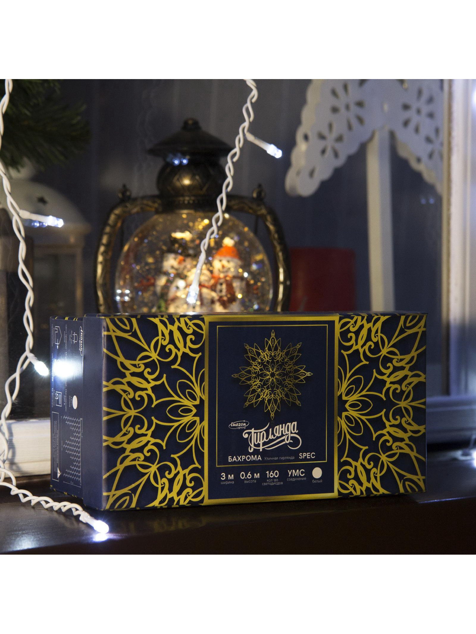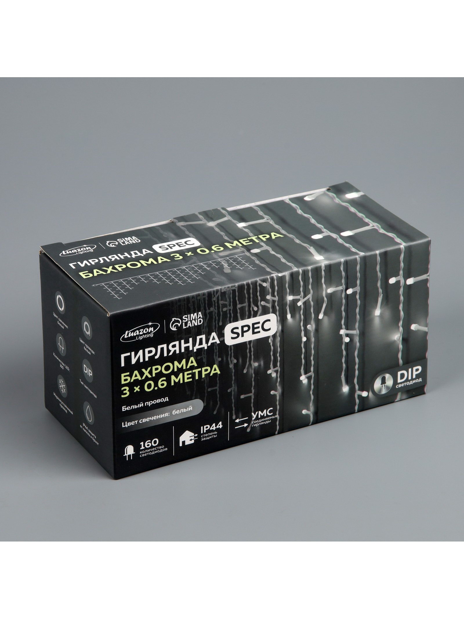 Гирлянда "Бахрома" 3 x 0.6 м, IP44, УМС, белая нить, 160 LED, свечение белое, мерцание белым, 220 В, 8x9x18 см., Luazon Lighting, Китай