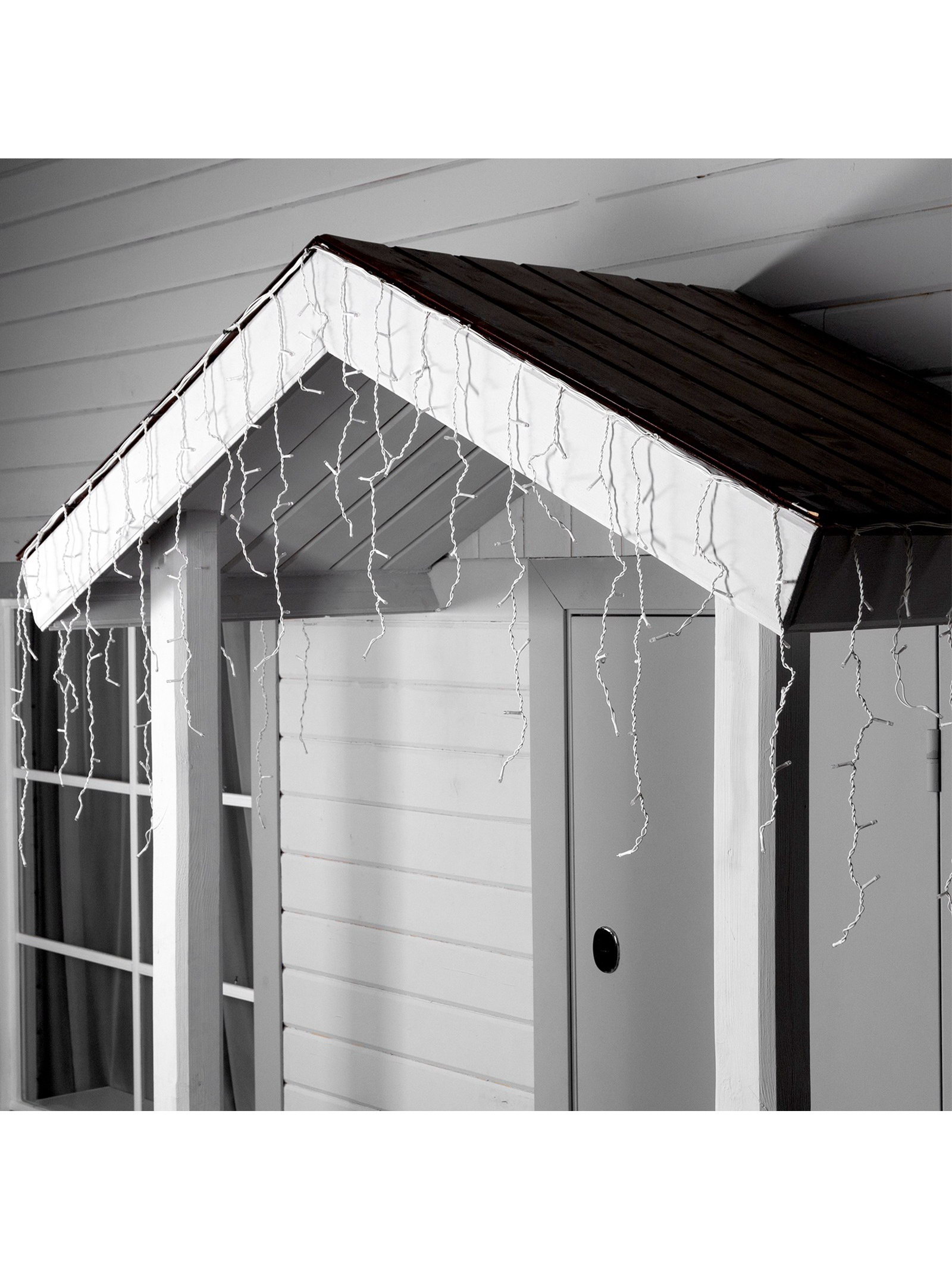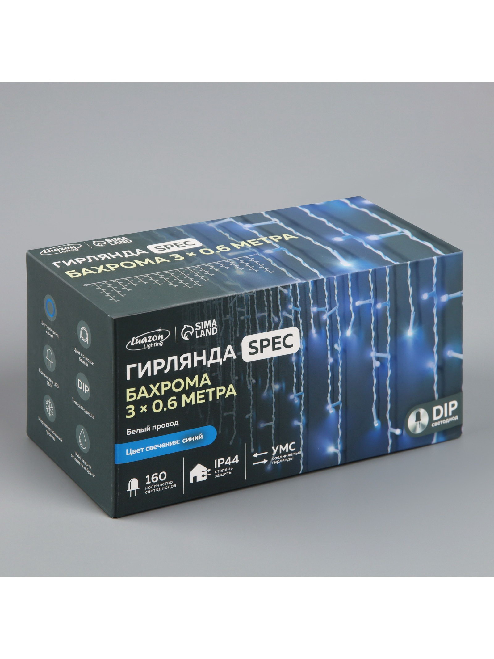 Гирлянда "Бахрома" 3 x 0.6 м, IP44, УМС, белая нить, 160 LED, свечение синее, мерцание белым, 220 В, 8x9x18 см., Luazon Lighting, Китай