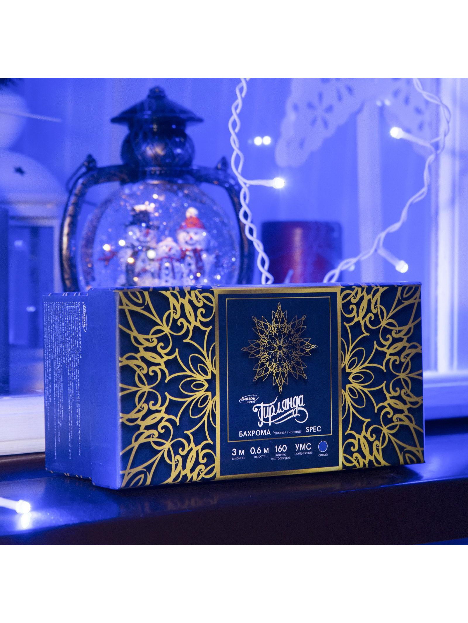 Гирлянда "Бахрома" 3 x 0.6 м, IP44, УМС, белая нить, 160 SMD-LED, свечение синее, 220 В, Luazon Lighting, Китай