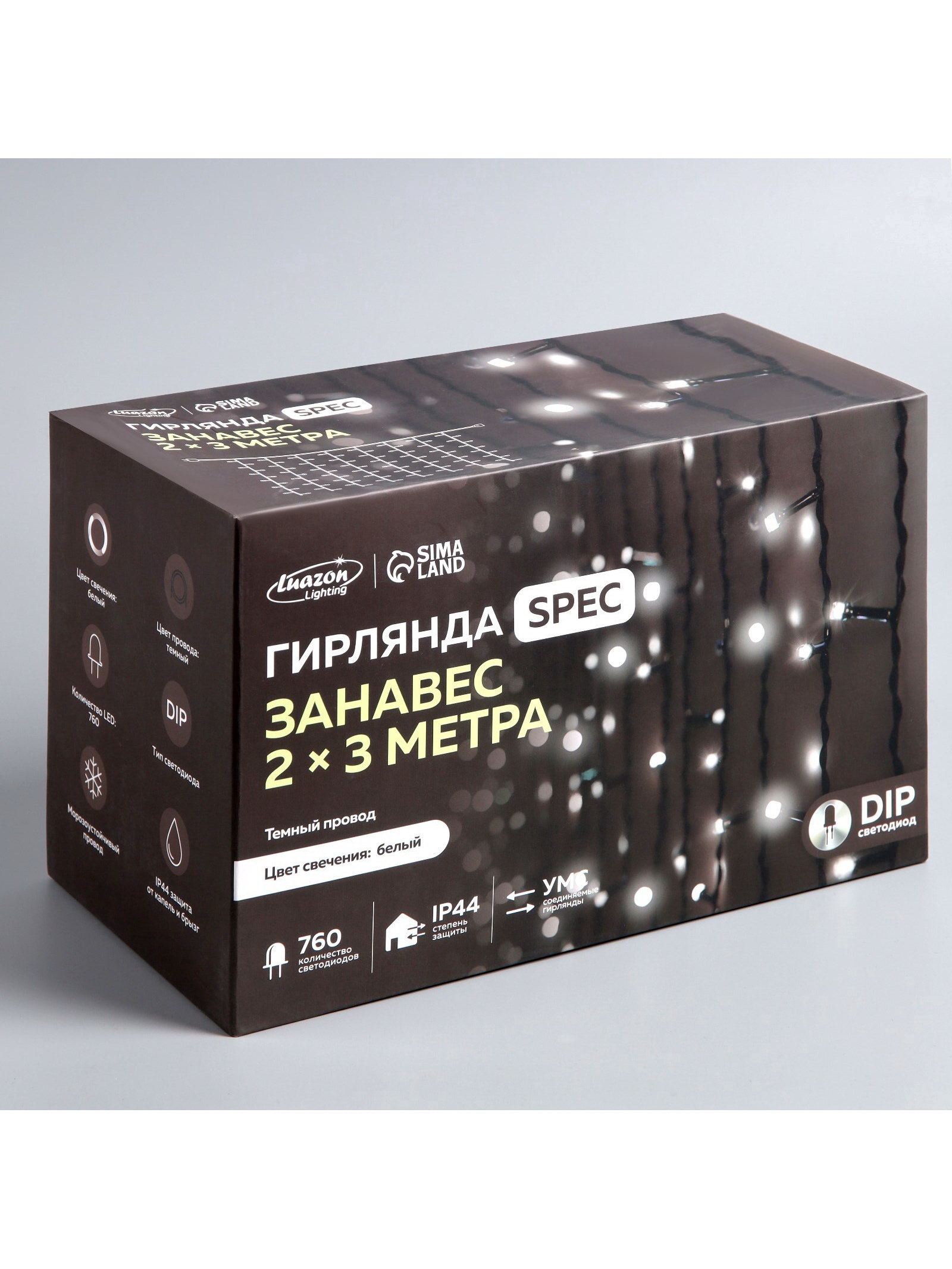 Гирлянда "Занавес" 2 x 3 м, IP44, УМС, тёмная нить, 760 LED, свечение белое, мерцание, 220 В, 15x28x18 см., Luazon Lighting, Китай