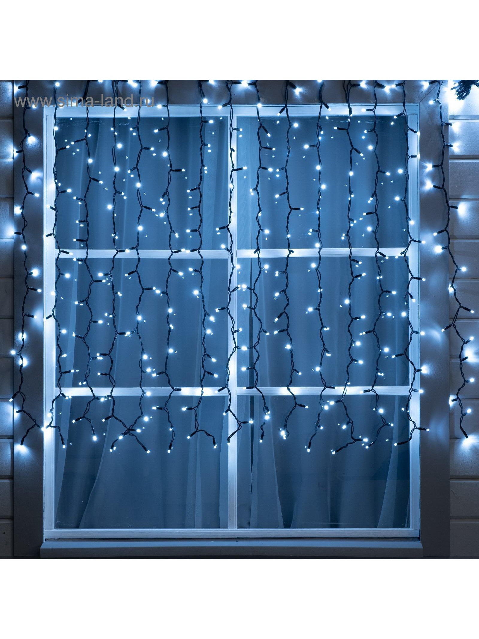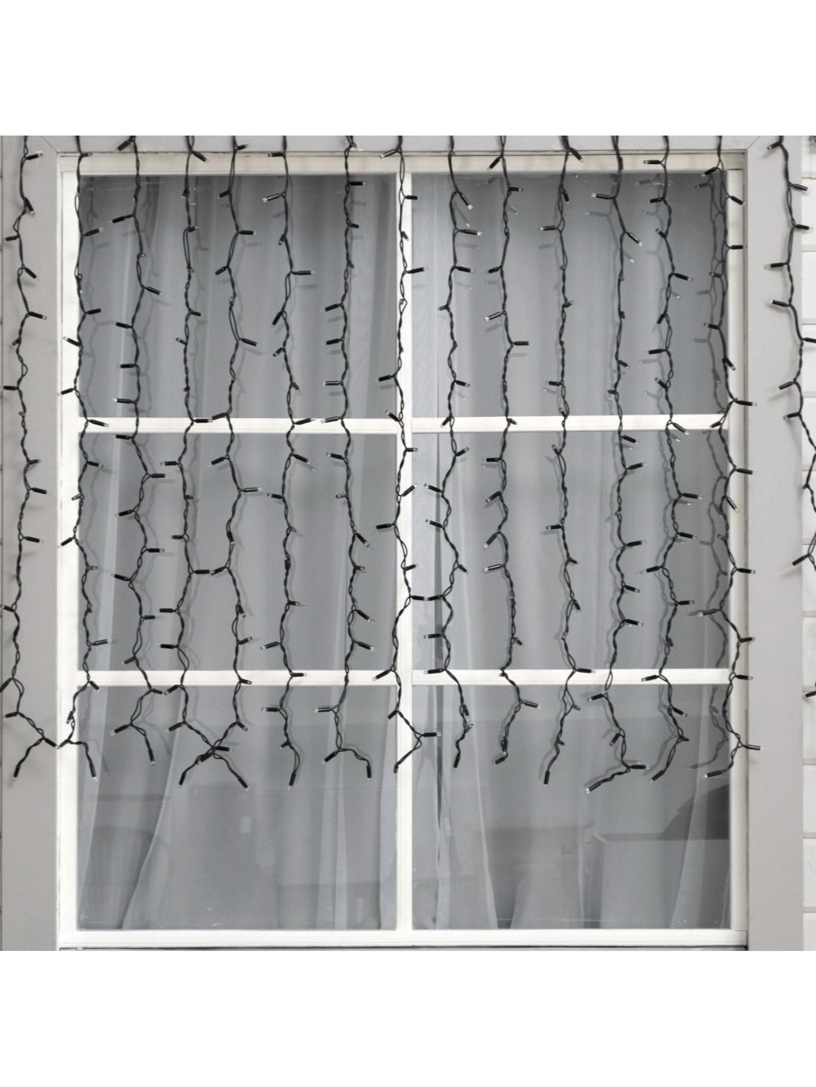 Гирлянда "Занавес" 2 x 1.5 м, IP65, УМС, тёмная нить каучук, 300 LED, свечение белое, 220 В, 15x25.5x17.5 см., Luazon Lighting, Китай