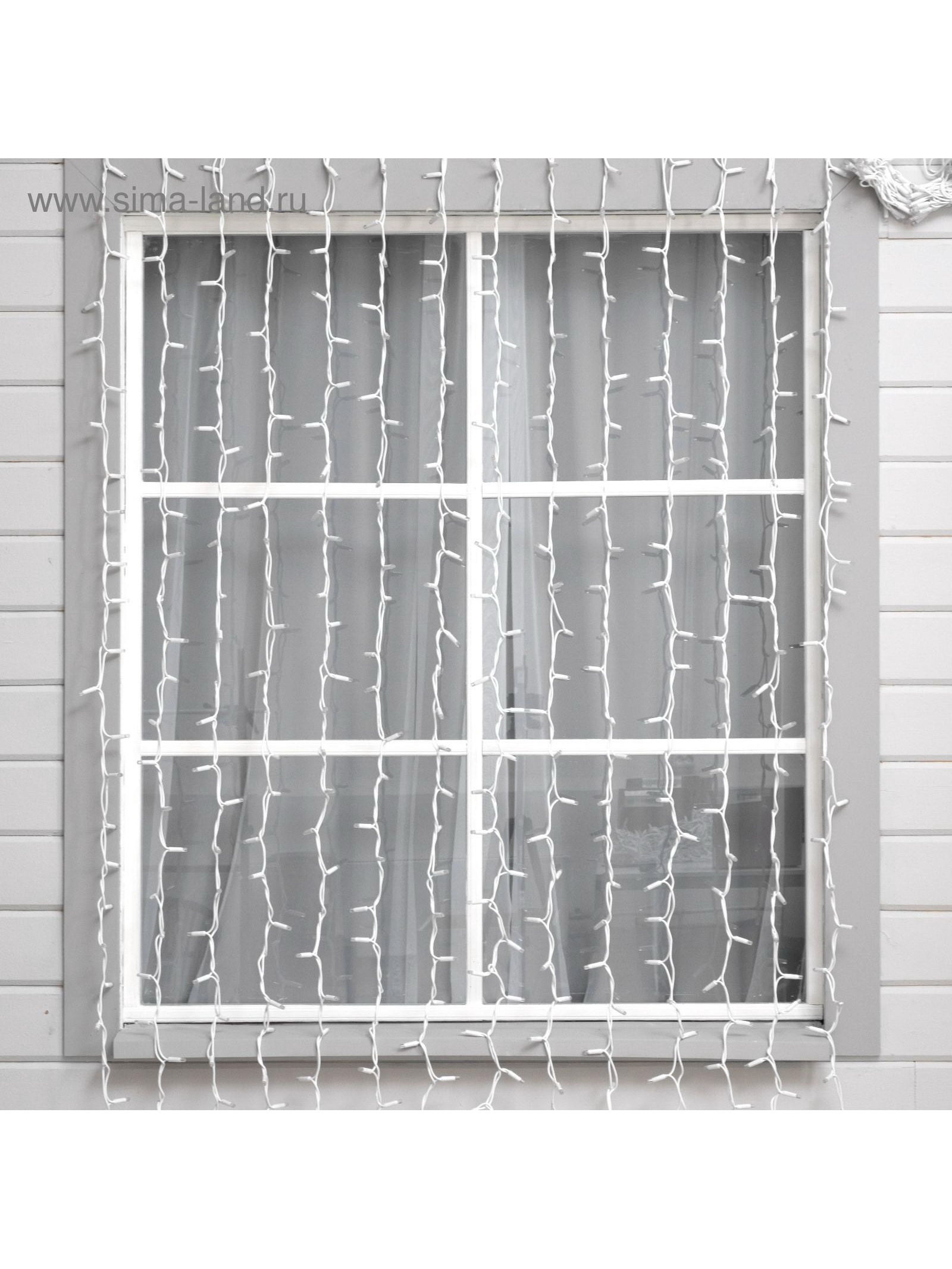 Гирлянда "Занавес" 2 x 3 м, IP65, УМС, белая нить каучук, 600 LED, свечение белое, 220 В, 17x28x19 см., Luazon Lighting, Китай