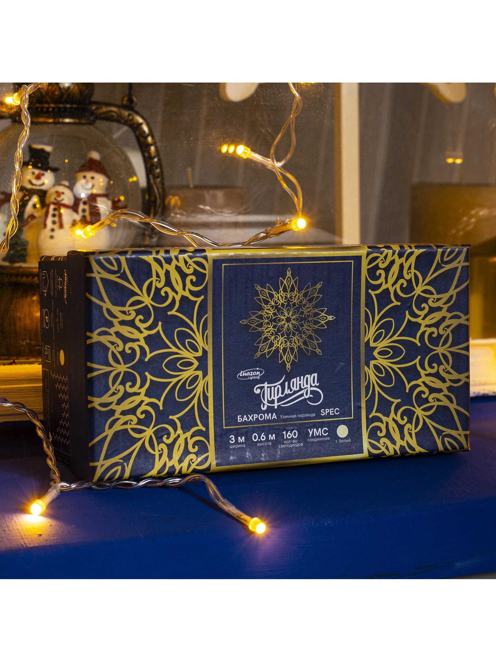 Гирлянда "Бахрома" 3 x 0.6 м, IP44, УМС, прозрачная нить, 160 SMD-LED, свечение тёплое белое, 220 В, Luazon Lighting, Китай