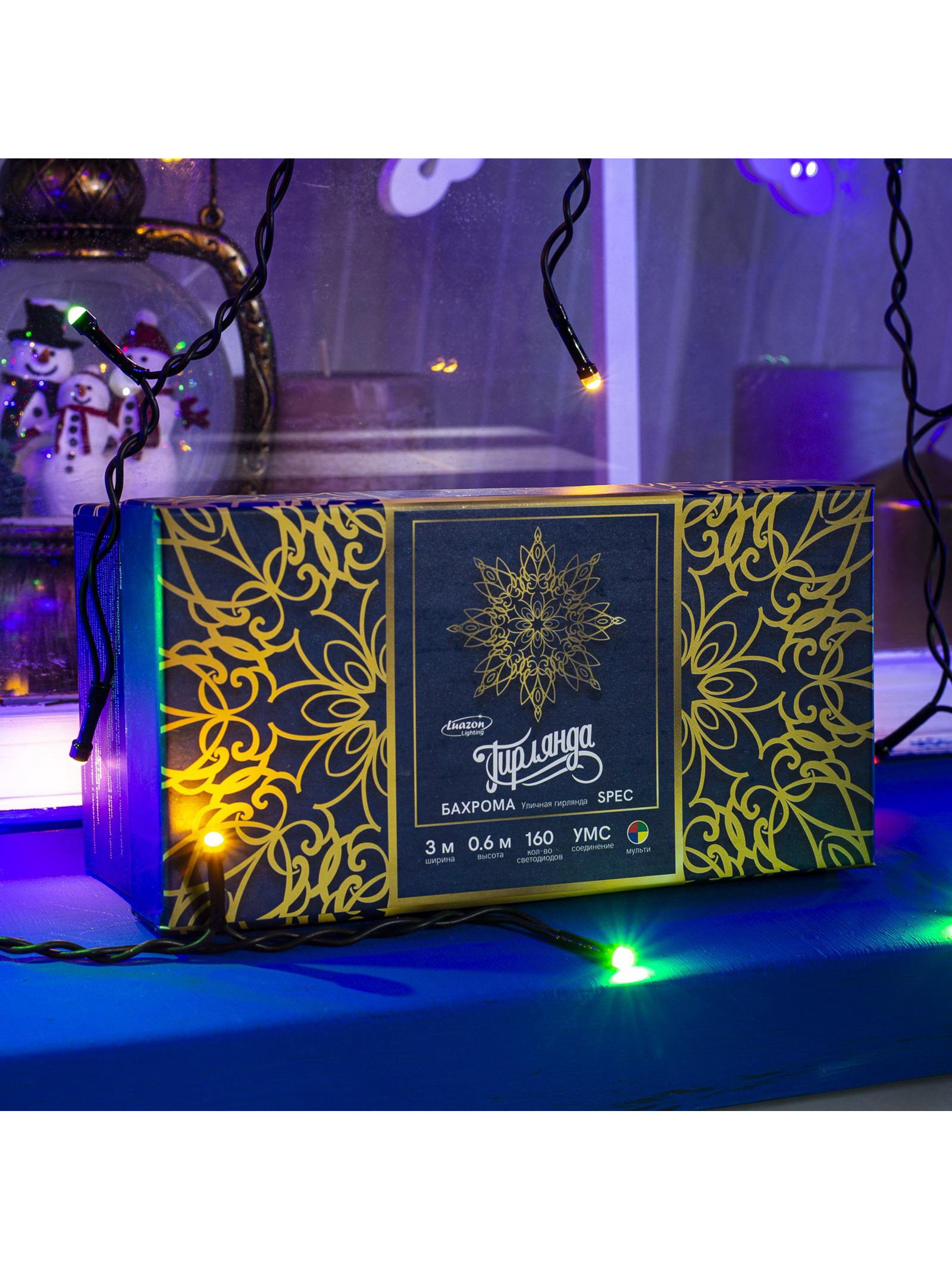 Гирлянда "Бахрома" 3 x 0.6 м, IP44, УМС, тёмная нить, 160 SMD-LED, свечение мульти, 220 В, Luazon Lighting, Китай