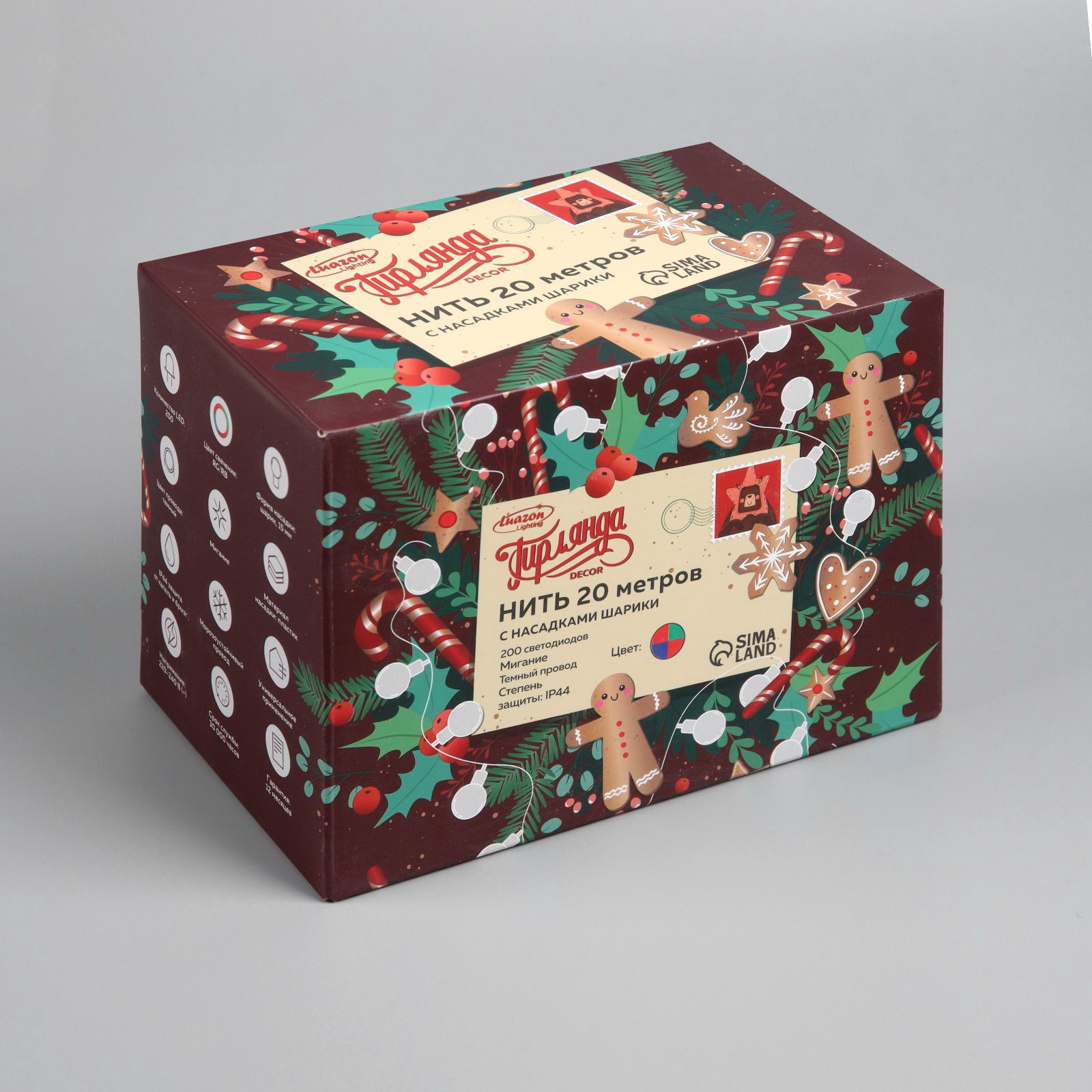Гирлянда "Нить" 20 м с насадками "Шарики 1.5 см", IP44, тёмная нить, 200 LED, свечение мульти, 8x8x20 см., Luazon Lighting, Китай