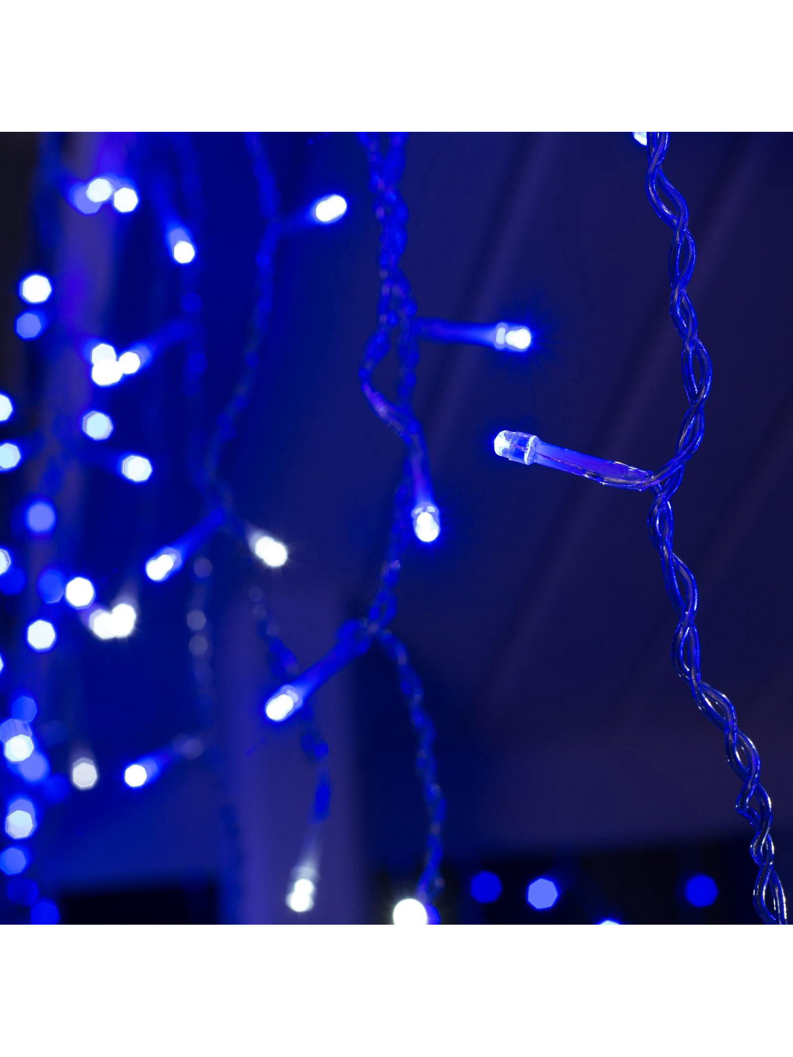 Гирлянда "Бахрома" 3 x 0.6 м, IP44, УМС, прозрачная нить, 160 LED, свечение синее, мерцание белым, 220 В, 8x9x18 см., Luazon Lighting, Китай