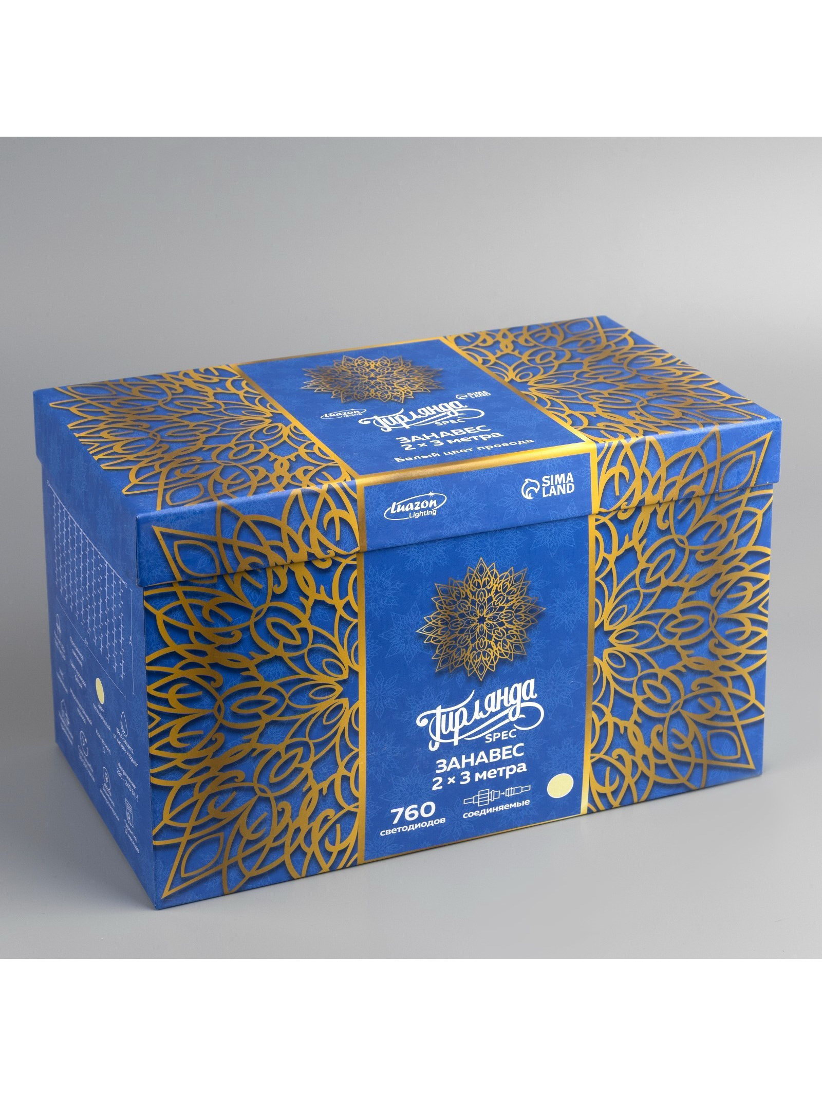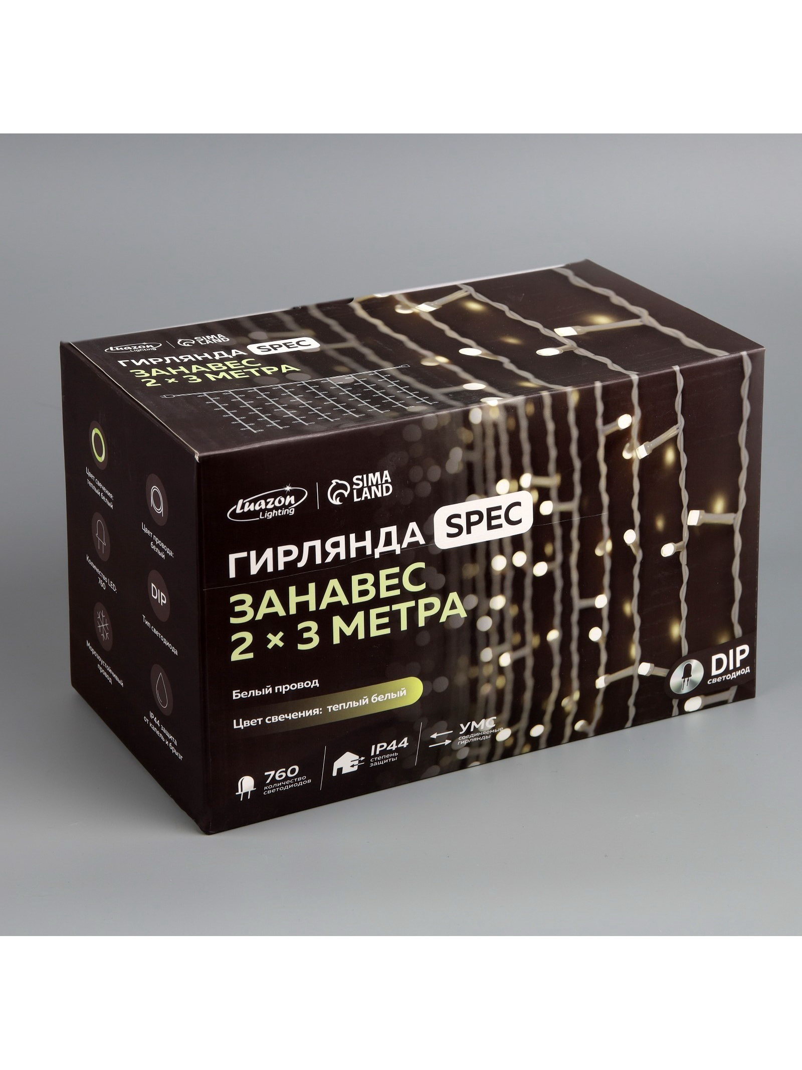 Гирлянда "Занавес" 2 x 3 м, IP44, УМС, белая нить, 760 LED, свечение тёплое белое, 220 В, 15x28x18 см., Luazon Lighting, Китай