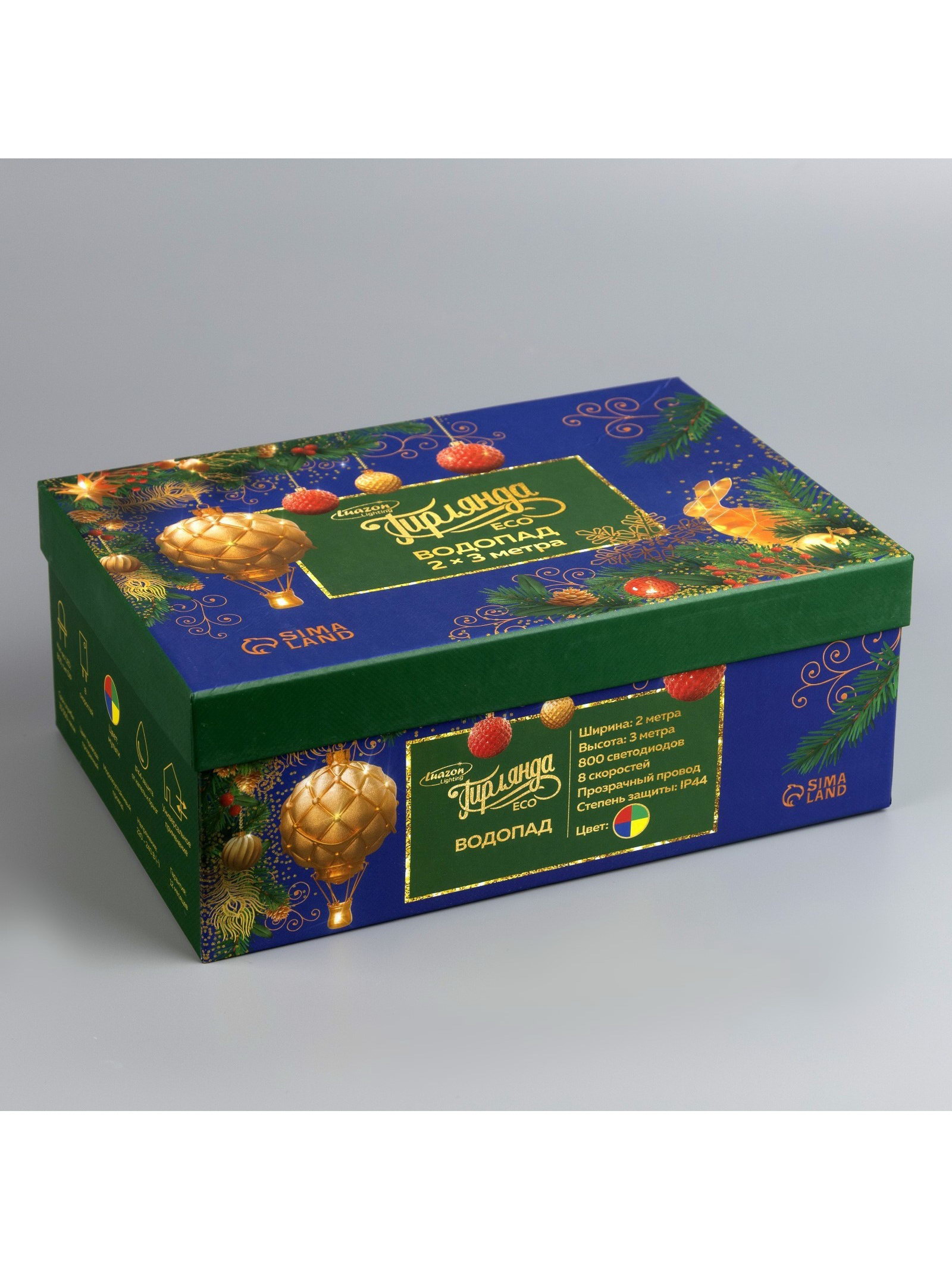 Размер упаковки: 17 x 10 x 25 см. Насадки: Нет Цвет нити гирлянды: Прозрачный Применение: Уличное Вид лампы: Светодиодная Размер, м: 2 x 3 Вид гирлянды: Водопад Тип подключения: С контроллером Режим работы: Задаётся контроллером Количество режимов: 8 Цвет свечения: Мульти Цвет свечения: Мульти tnved: 9405420000 Гарантийный срок, мес.: 12 Количество ламп: 800 Вид насадки: Без насадок Вид светодиода: DIP Высота, м: 3 Ширина, м: 2 Тематика праздника: Новый год Необходимая комплектация: Не нужна Степень защиты: IP44 Материал нити: ПВХ Температурный режим: От -30 до +35 ℃ Тип питания: От сети 220 В
