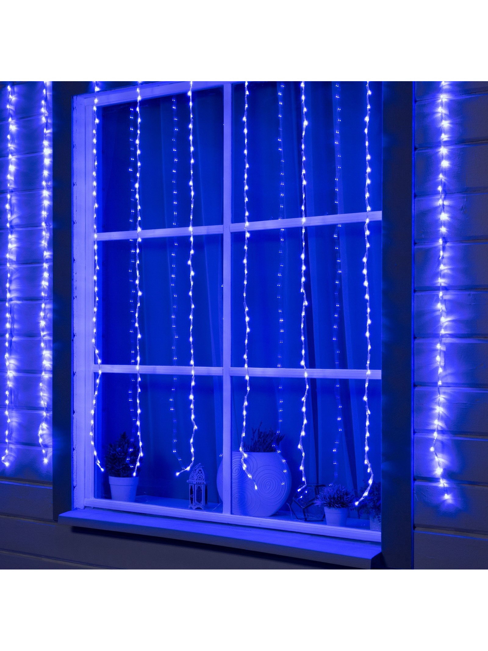 Гирлянда "Водопад" 2 x 1.5 м, IP44, прозрачная нить, 400 LED, свечение синее, 8 режимов, 220 В, 200x150 см., Luazon Lighting, Китай