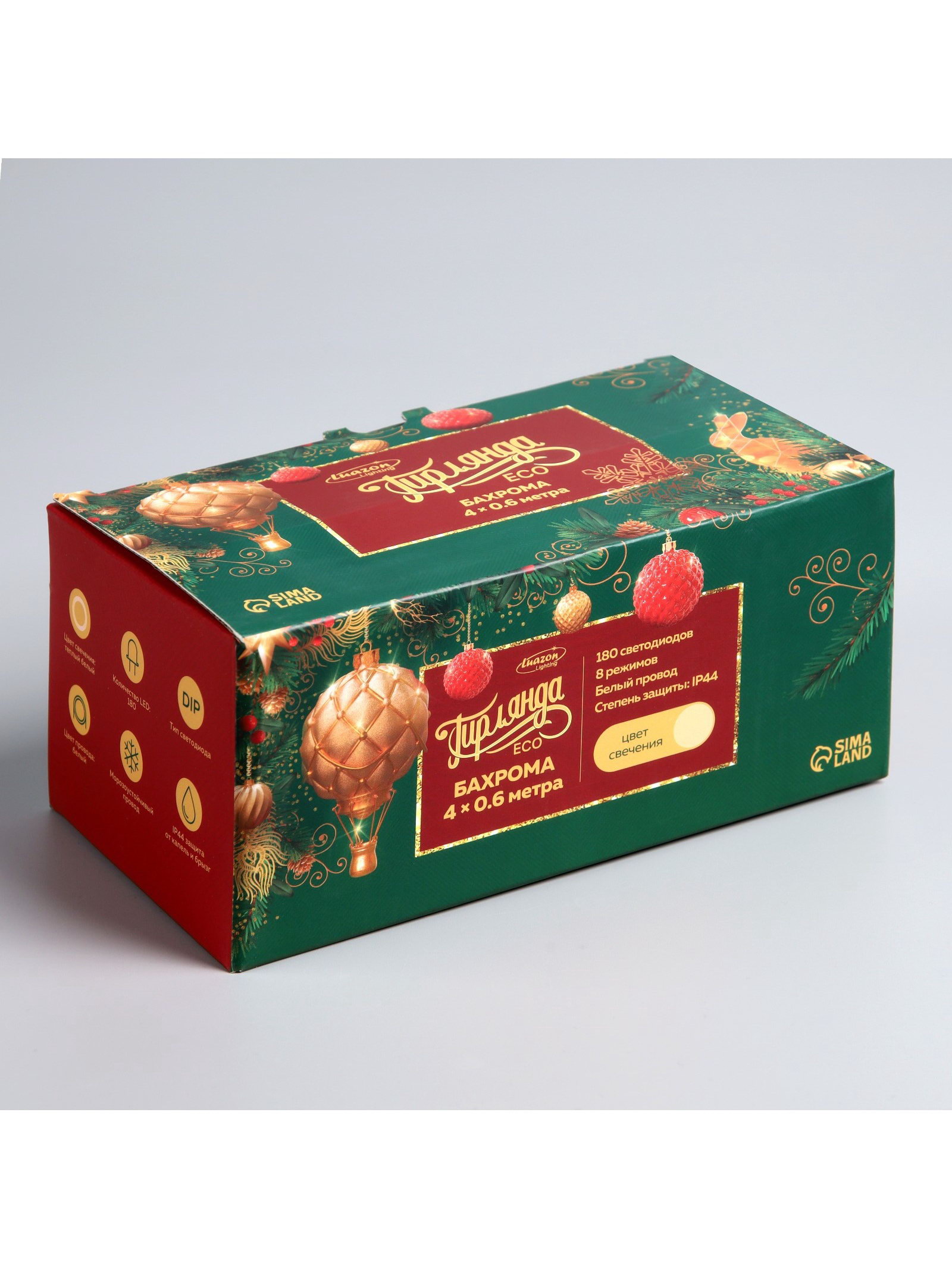Размер упаковки: 11 x 8.5 x 19 см. Применение: Уличное Вид гирлянды: Бахрома Вид лампы: Светодиодная Размер, м: 4 x 0.6 Цвет свечения: Тёплый белый Режим работы: Задаётся контроллером Наличие блока питания: Нет Насадки: Нет Цвет нити гирлянды: Белый Тип подключения: С контроллером Количество режимов: 8 tnved: 9405310000 Гарантийный срок, мес.: 12 Количество ламп: 180 Вид насадки: Без насадок Вид светодиода: DIP Высота, м: 0.6 Ширина, м: 4 Тематика праздника: Новый год Степень защиты: IP44 Материал нити: ПВХ Необходимая комплектация: Не нужна Температурный режим: От -30 до +35 ℃ Тип питания: От сети 220 В
