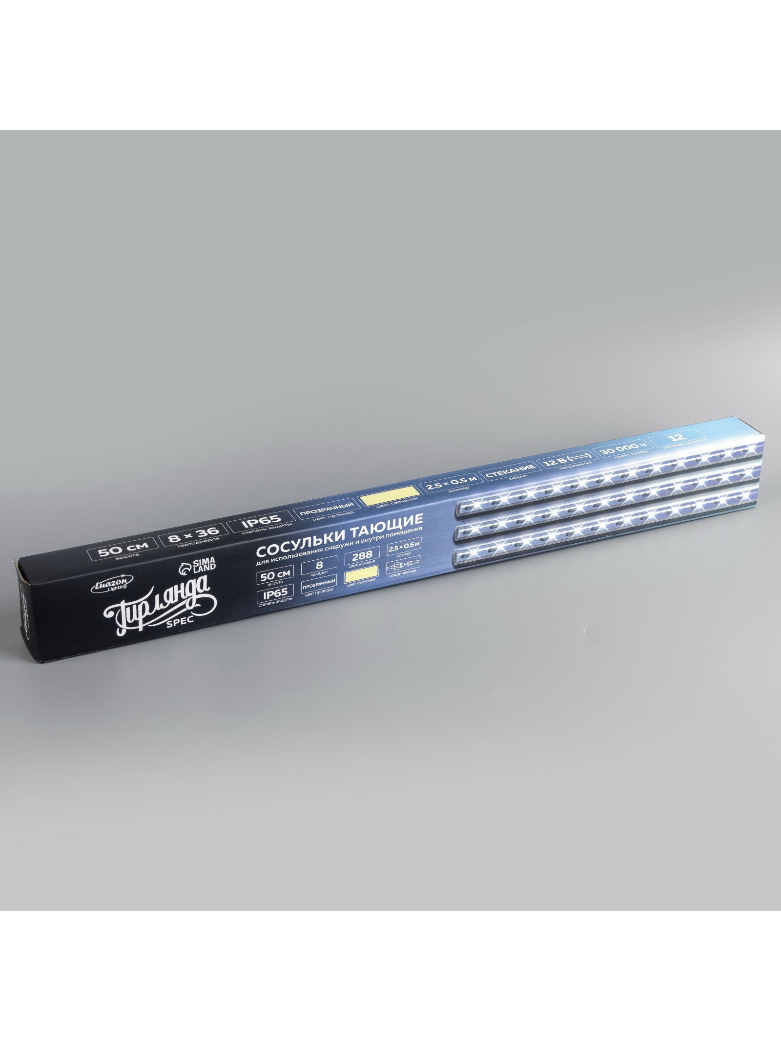 Гирлянда "Сосульки" 2.5x0.5 м, IP65, прозрачная нить, 288 LED, свечение тёплое белое с эффектом стекания, 12 В, Luazon Lighting, Китай