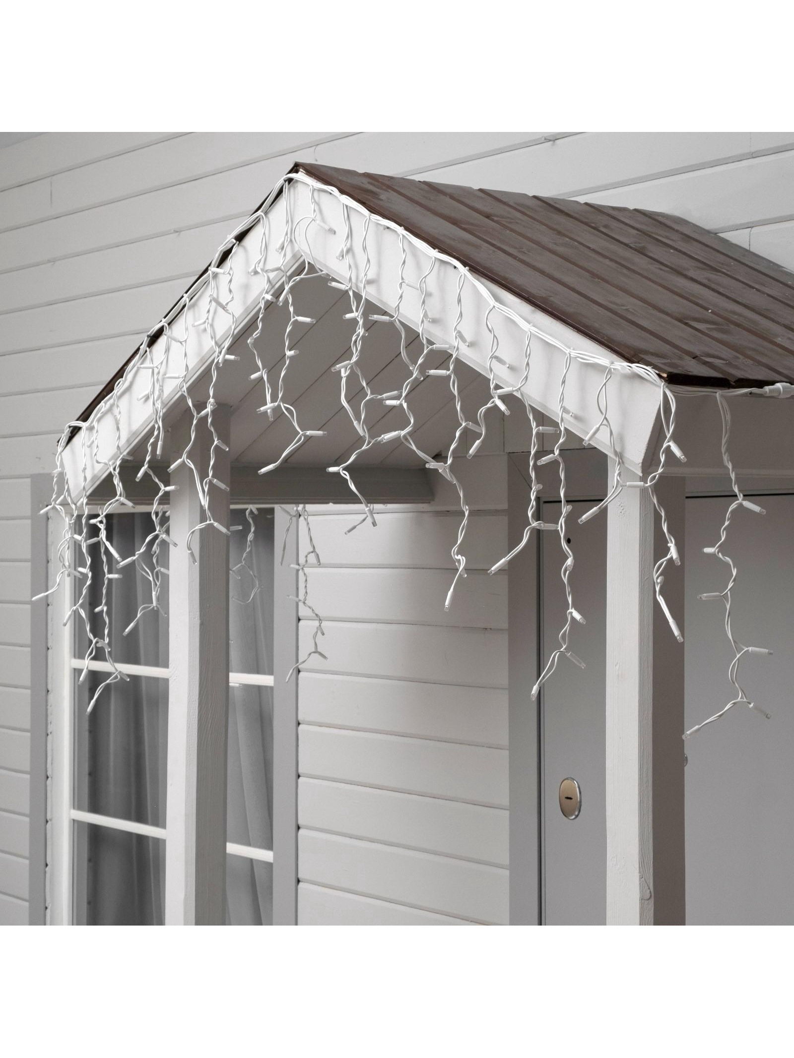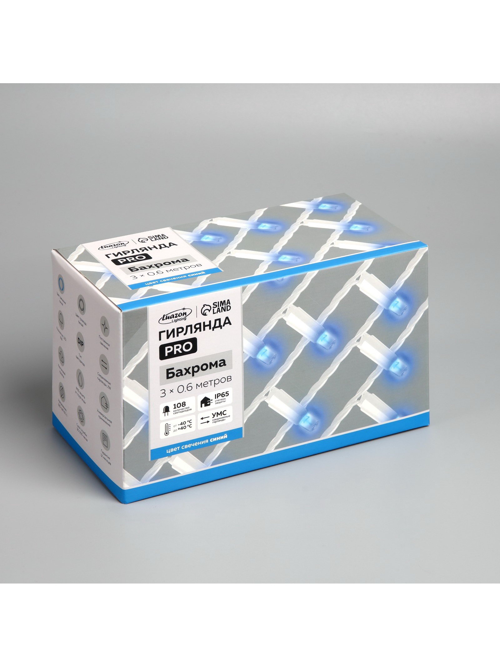 Гирлянда "Бахрома" 3 x 0.6 м, IP65, УМС, белая нить каучук, 108 LED, свечение синее, 220 В, 13x23x16 см., Luazon Lighting, Китай